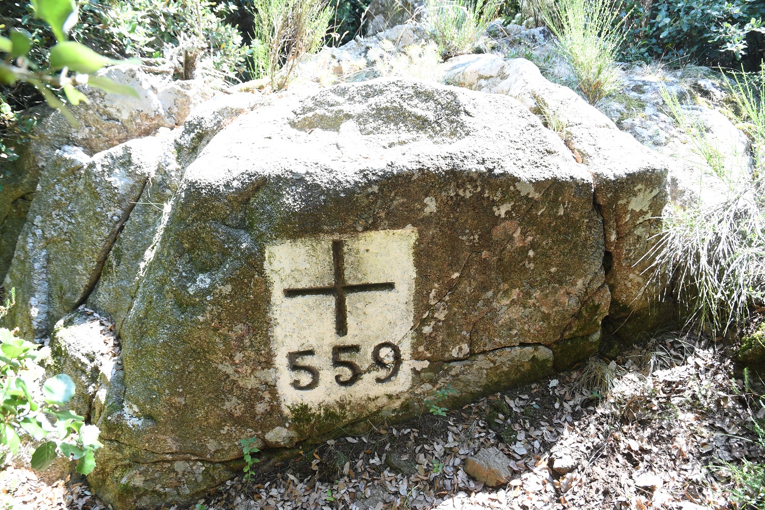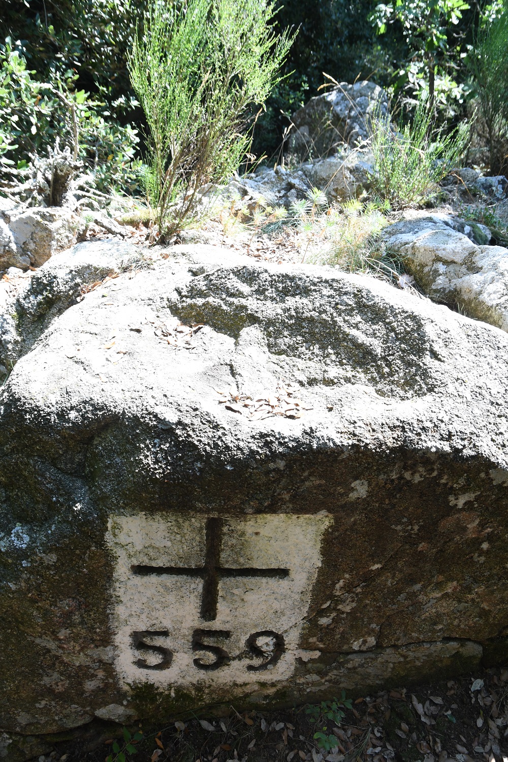 Near the rural crossing there is Bordermarker #559 carved on a stone. In the Col itself there are road signs and a graffiti covered rock which is country specific. More details here