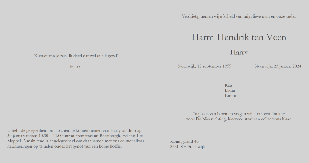 fondly remembered by members not only of the IBRG but also the Dutch border community as a whole.