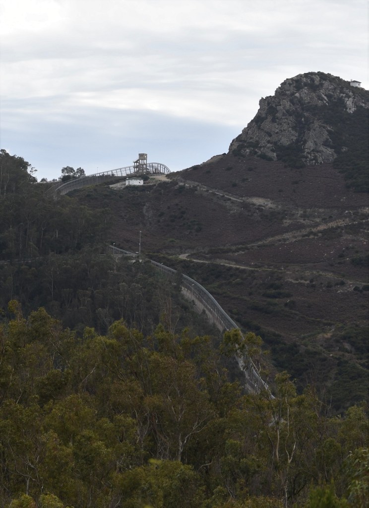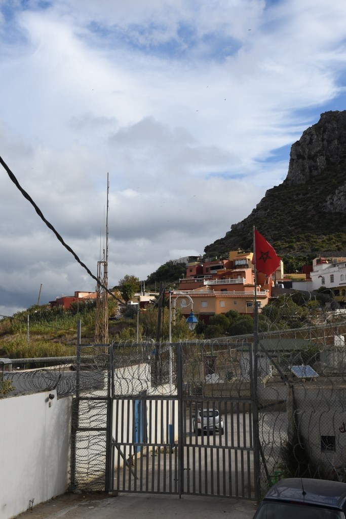 As we were driving a Moroccan rental car, we simply drove through the gate and parked, this gave us access to the wider area. Photography was formally not allowed. It was not possible to visit the border itself as that was located behind 2 fences on the Moroccan side. It appears to be marked at this point by a small stream. As far as we could tell, and no one spoke English here, the border crossing had not been in use for some time (since the early 2000’s), and prior to it closing was used for local workers who filled hotel and childcare posts across the border. Other women bought household items which in turn were sold in Moroccan markets, it’s closure impacted on the local Moroccan economy. We visited this point from both the Moroccan and Spanish sides.