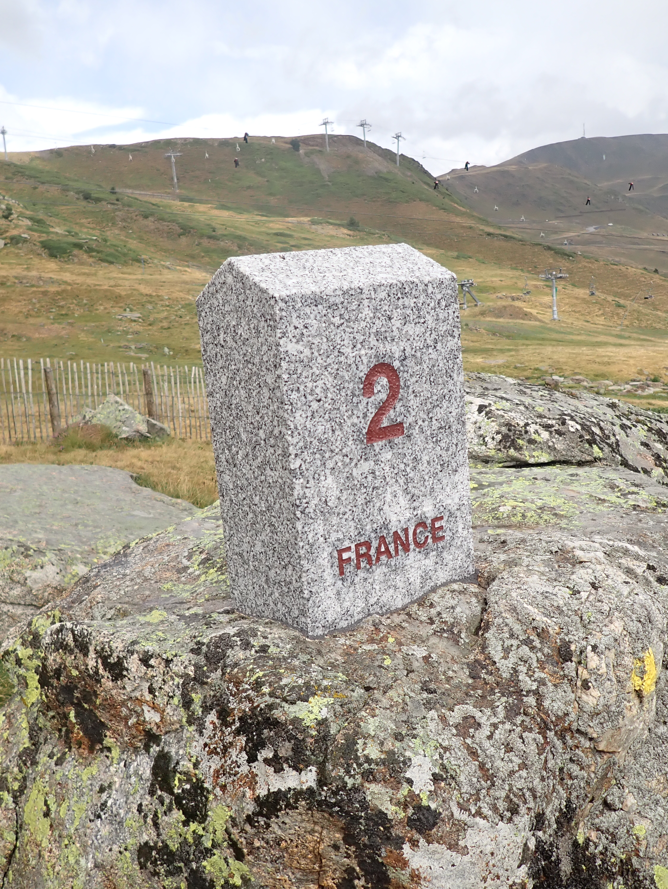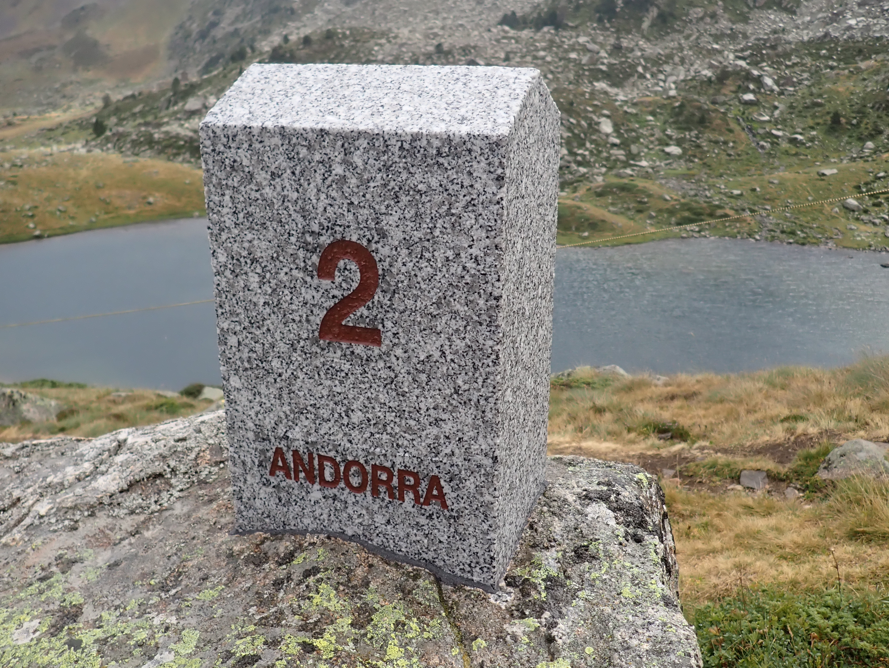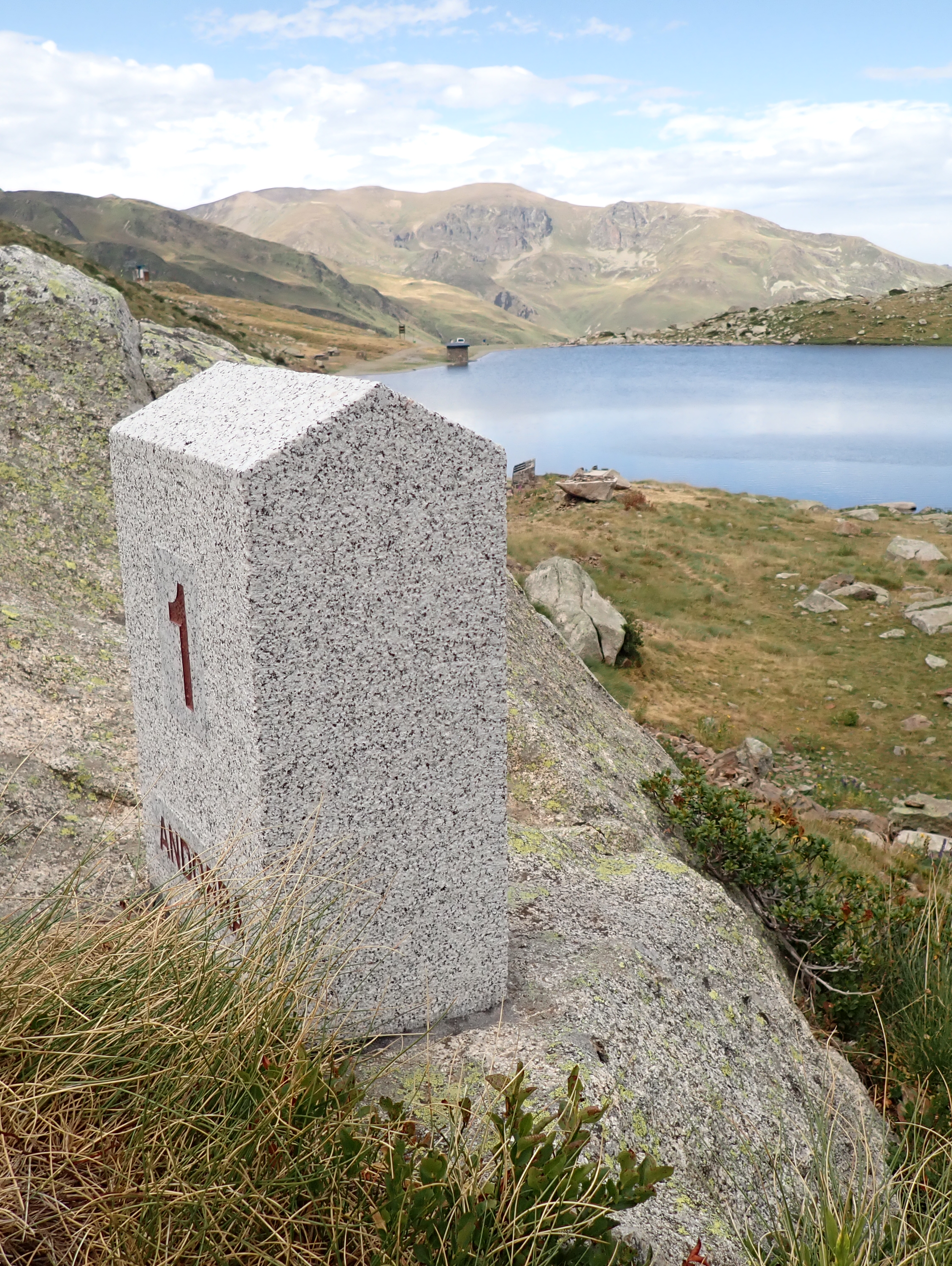 L’Estany de les Abelletes is located above Pas de la Casa, at 2,260 m, at the head of the Airège river basin, a tributary of the Garonne, a popular destination for picnics in summer. I visited the lake en route to ADESFRe (both there and back). The lake is of particular interest to border enthuiasts for 2 reasons, firstly the border between Andorra and France goes through it and secondly, newly designed and erected border markers (the first and only ones on the Andorran border) mark the new border.