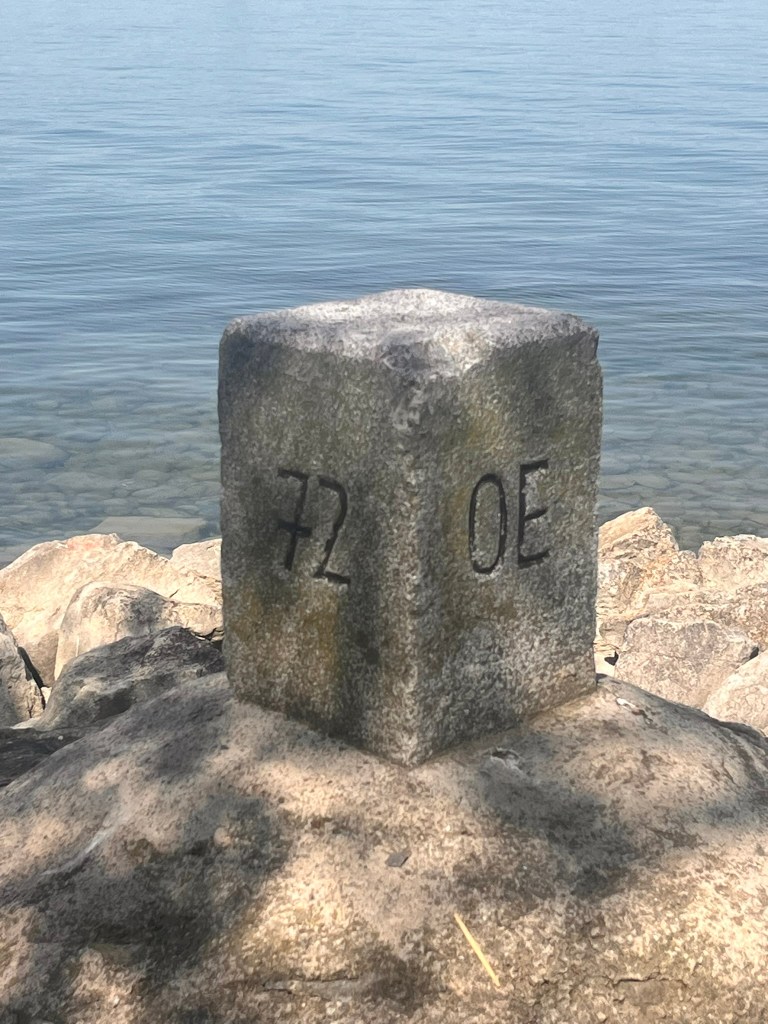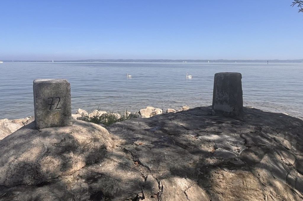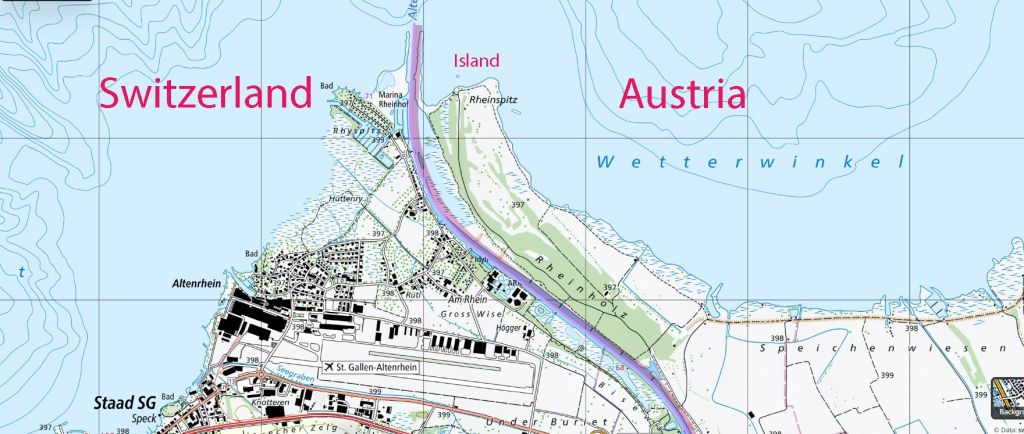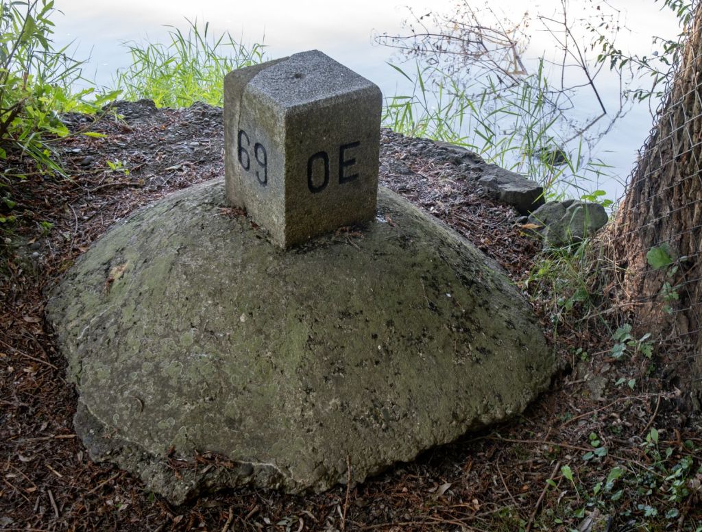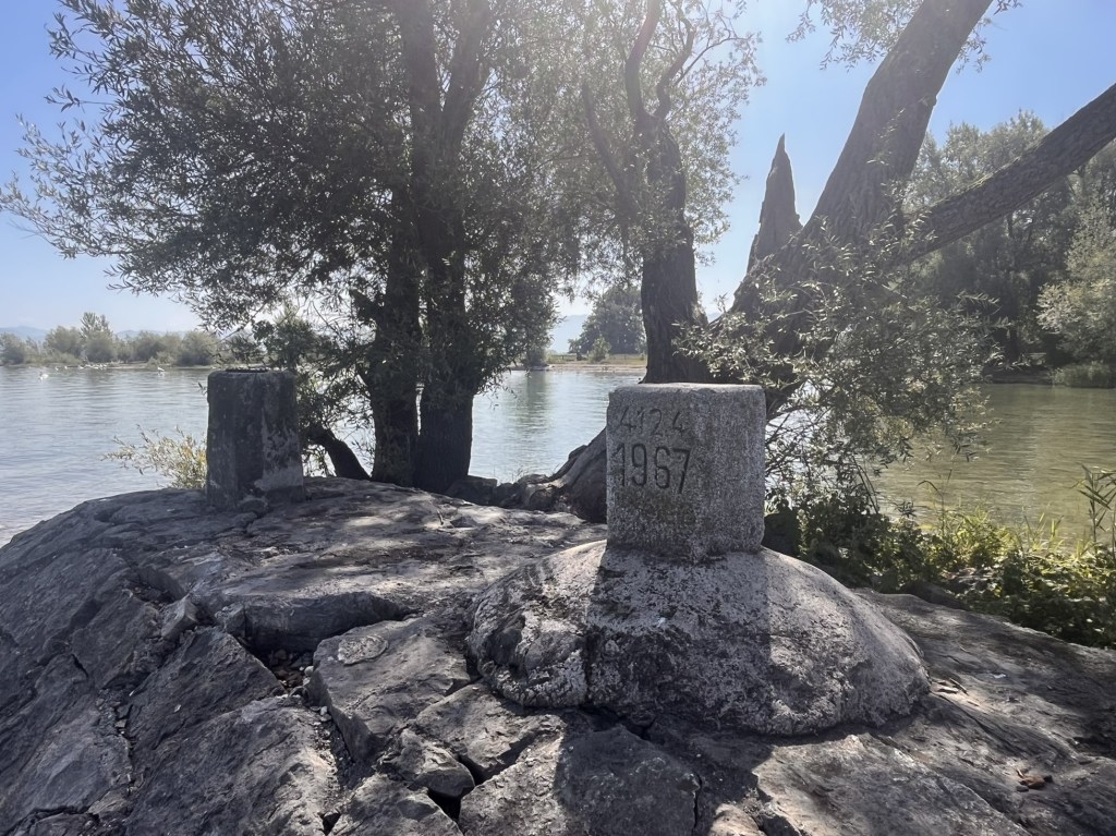 The border between Austria and Switzerland in the south eastern part of the Bodensee (Lake Constance) is marked by the Old Rhine (German: Alter Rhein), as the Rhine enters the lake there is a small peninsula on either side. The whole area is a nature reserve and exceptionally beautiful. Our focus was however, was on a small island east of the border where the last border marker BM#72 is located. We visited this point as part of the IBRG LIVCO-25 expedition.