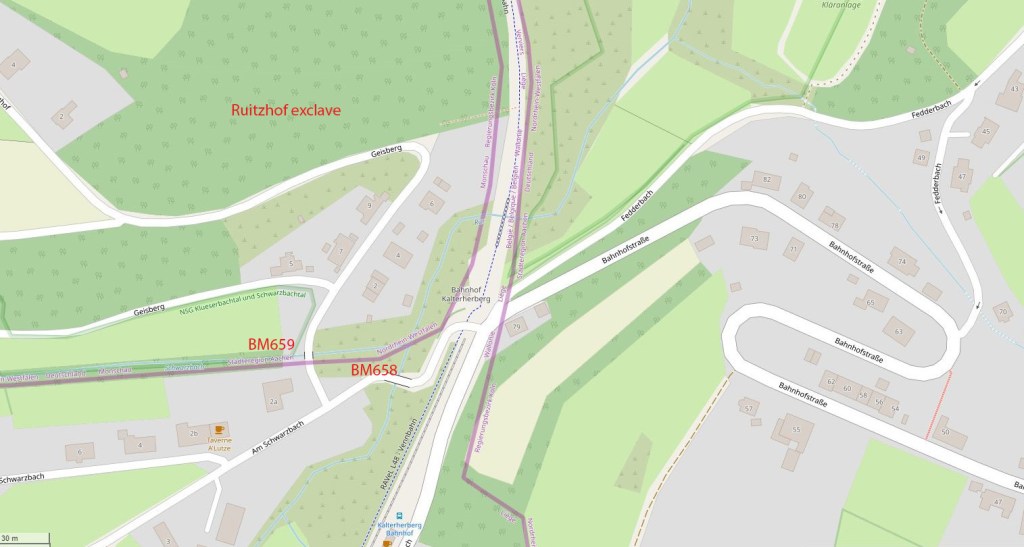 Rückschlag is one of the most interesting exclaves insofar as it is a single property. I visited here in 2012 but it’s still fascinating how the border is in effect the garden edge.