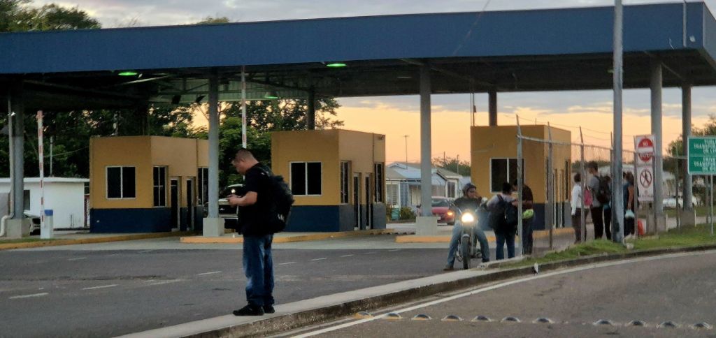 Driving north one reaches the Belizean passport control and immigration, the facilities are modern and straightforward but still take time. One booth was open and there was a line of people waiting, after getting our passports stamped, the cancelling of the car import permit was next. By the time all this was done it was dark.