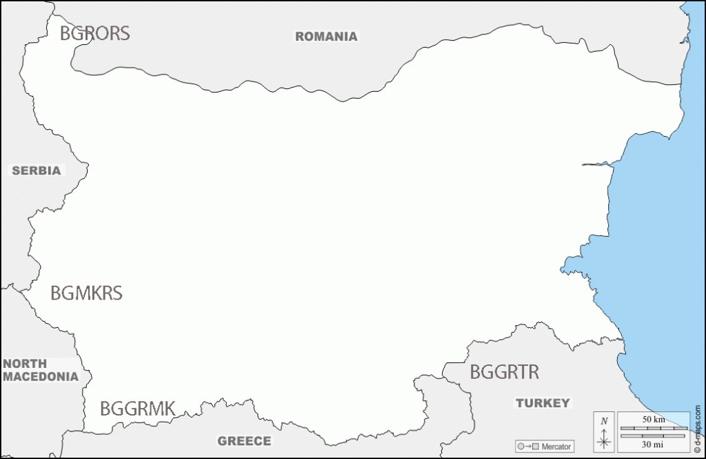 Bulgaria, Greece and Macedonia at BGGRMK. Treaty of Neuilly-sur-Seine (1919) established the current border, where Bulgaria lost various territories due to it being on the losing side in WW1. Although these territories were regained during WW2, after 1945 the 1919 border was restored. The border extends eastwards through the Nestos valley, up to the border tripoint between Greece, Bulgaria and Turkey (BGGRTR), where it crosses the river called “Maritsa” by the Bulgarians and “Evros” by the Greeks.