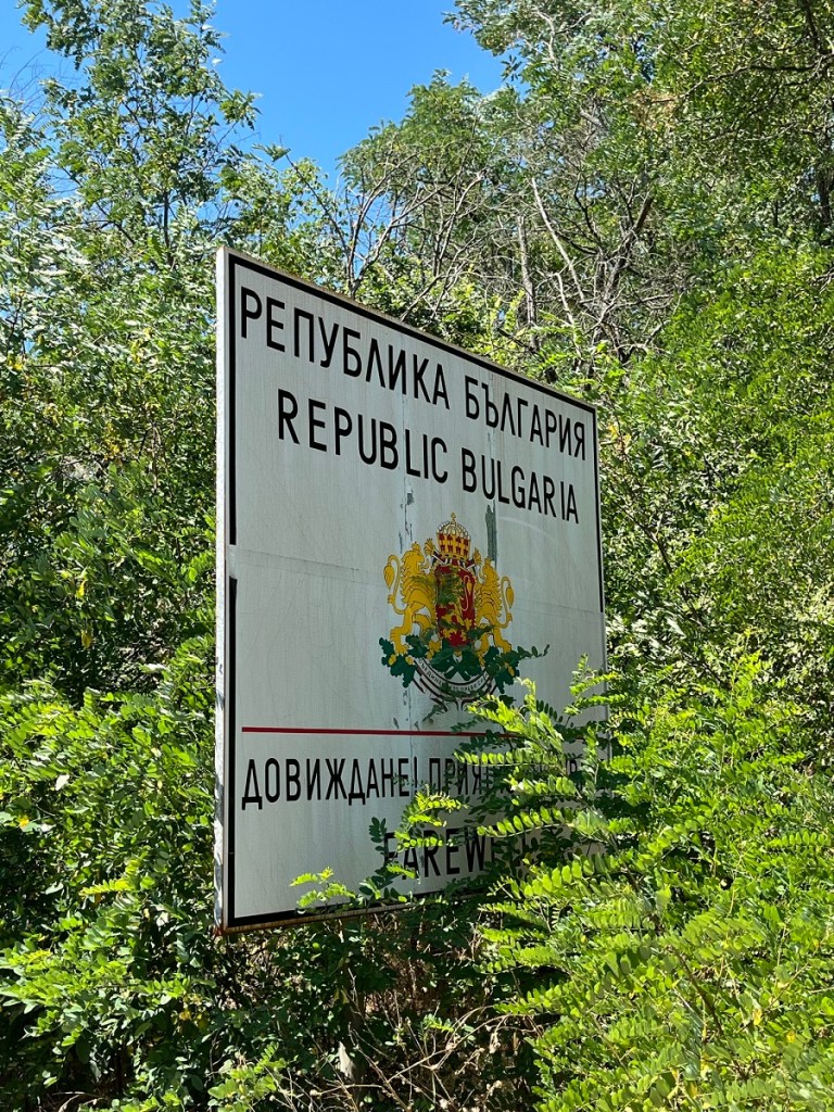 The border was marked by a small river at this point. The border control facilities were some distance from the border so it was possible to stop and look around. Welcome signs (to Bulgaria), no border markers (they were some distance away and inaccessible).