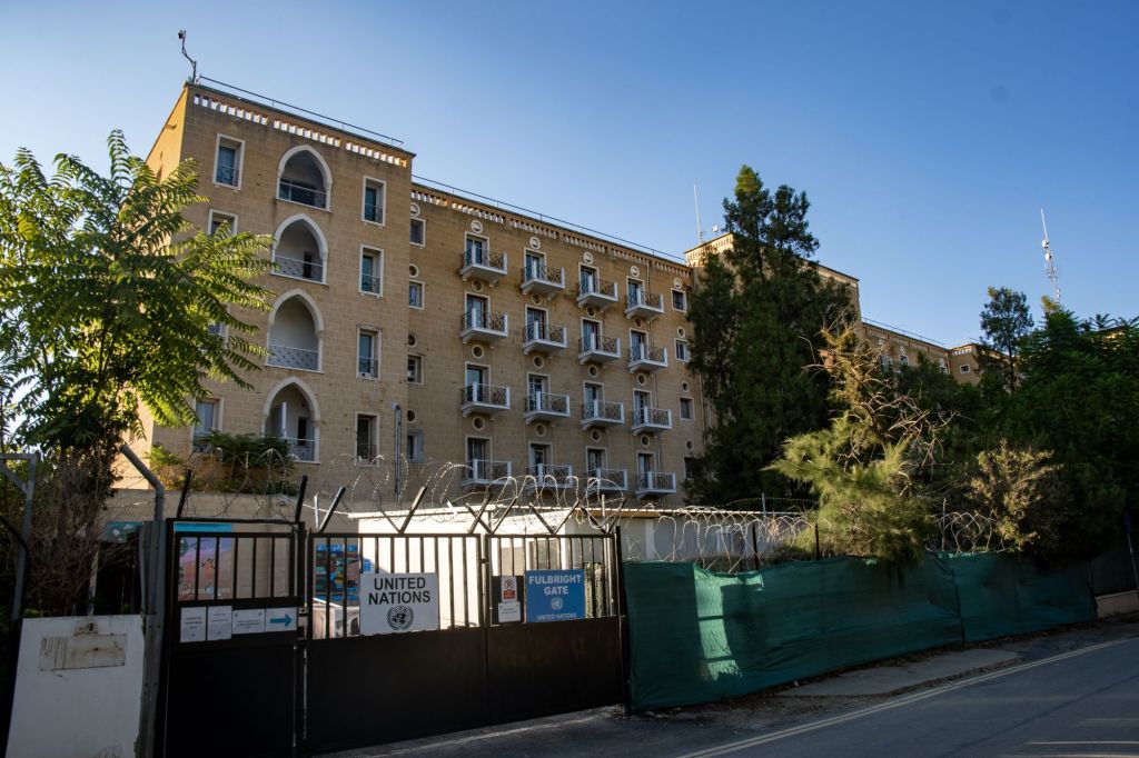 Ledra Palace Hotel until 1974 was one of the largest and most glamorous hotels of the capital. The hotel was designed by the German Jewish architect Benjaminr Günsberg and was built between 1947 and 1949 and was opened in the presence of the British Governor. It was a deluxe hotel with a swimming pool and conference rooms. During the invasion, the Turkish Military attempted to take the hotel however were unsuccessful