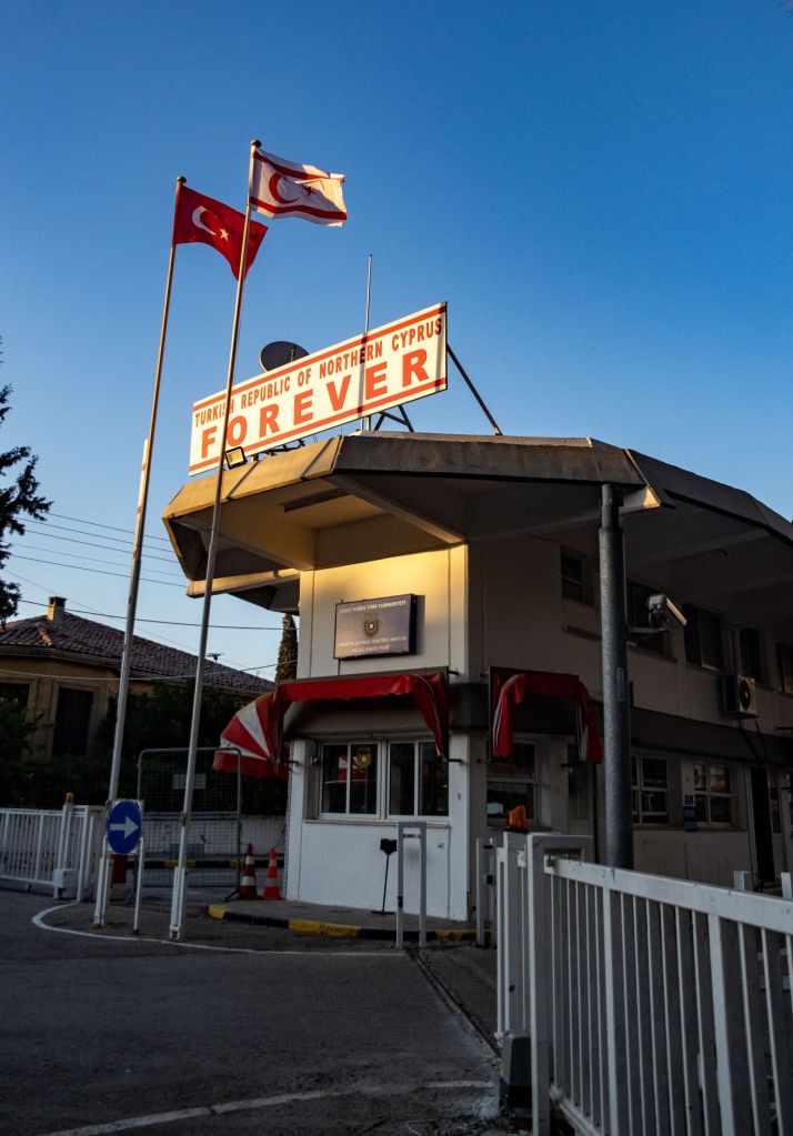 Walking north towards the TRNC checkpoint there a large open space between the north and south parts of Nicosia. Passing the checkpoint and walking on the northern side there are clear views of the Nicosia walls, UN watchtowers and a shared football pitch.