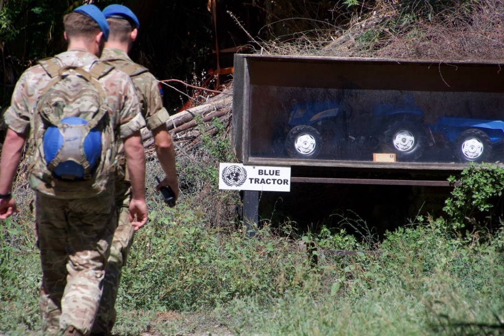 Each side used certain features of the Buffer Zone to demarcate different sectors. One of these landmarks was a blue tractor left behind during the fighting in 1974. After 11 years of negotiating its return, the Greek owner was allowed into the Buffer Zone for 24 hours to recover his property. He had to be alone, he couldn’t use any other vehicle and the tractor had to be driven out. After 16 hours of work, the tractor was started and driven out to the Greek side.