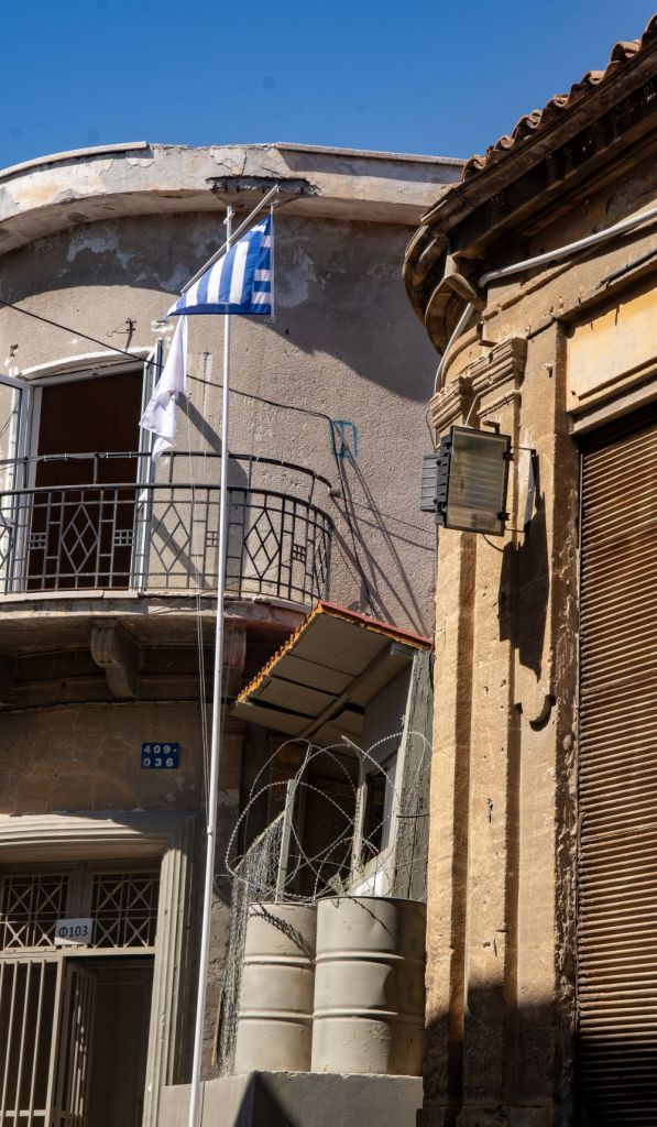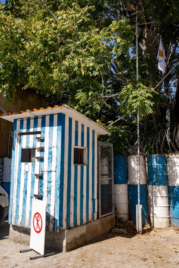 After leaving the blue tractor we headed further to Ermou Street, the road runs immediately along the southern edge of the buffer zone with several barriers. In Tritonus Street there is a UN access point with clear views of the buffer zone.