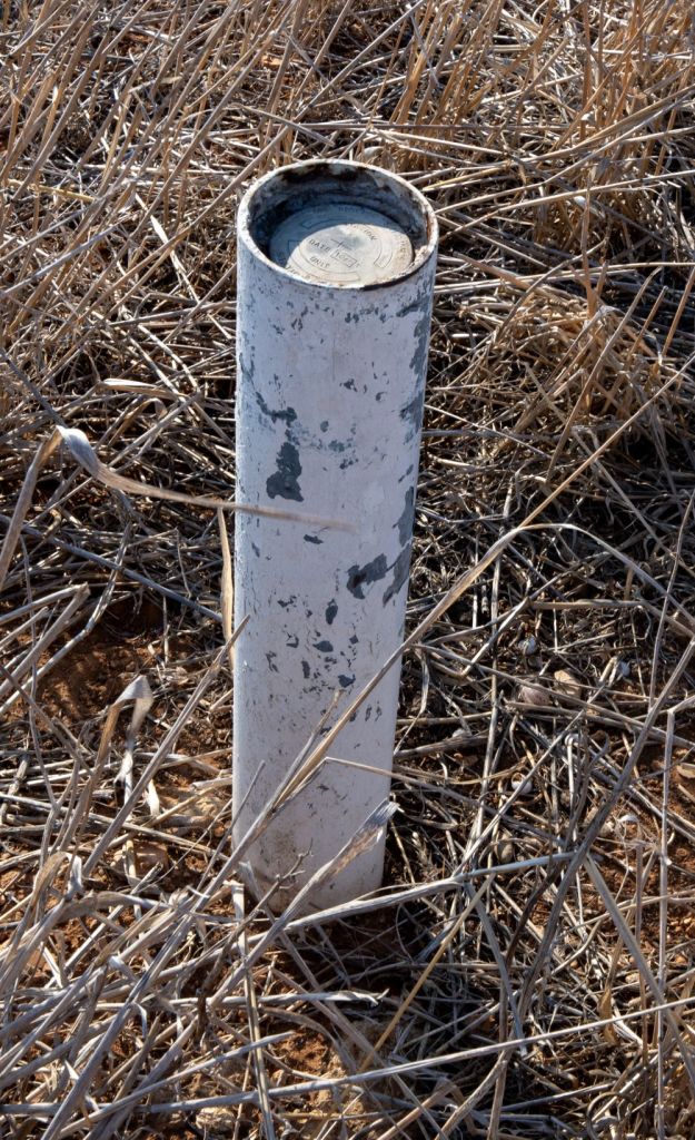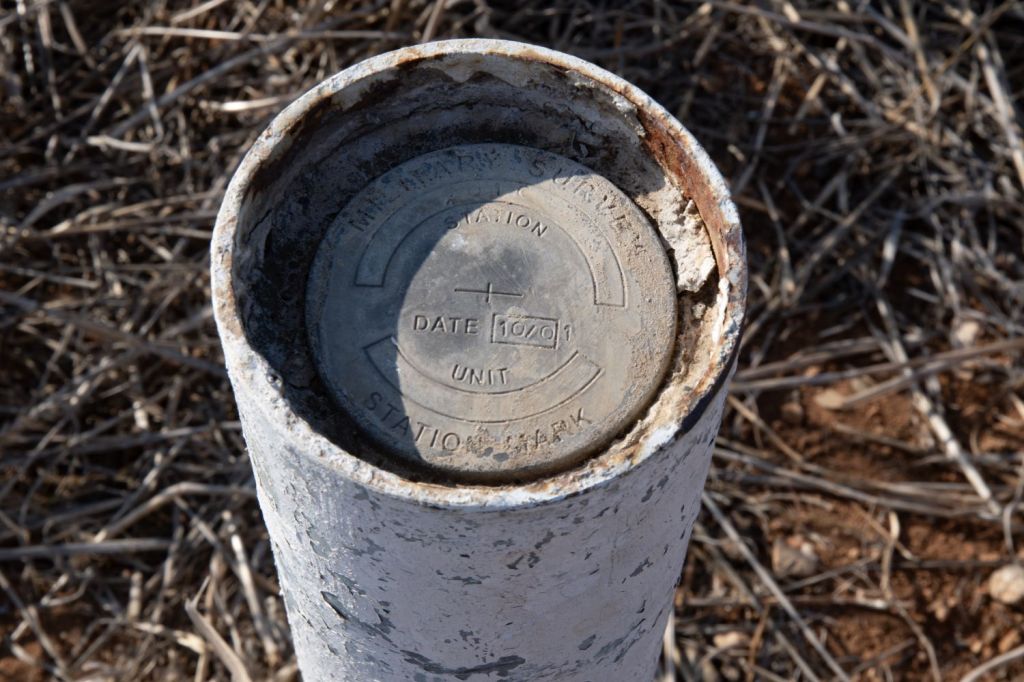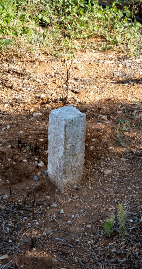 We drove to the NE edge of the exclave, where surprisingly we found 2 markers, one that appeared to be a replacement – protected as we arrived by a plastic cone.
