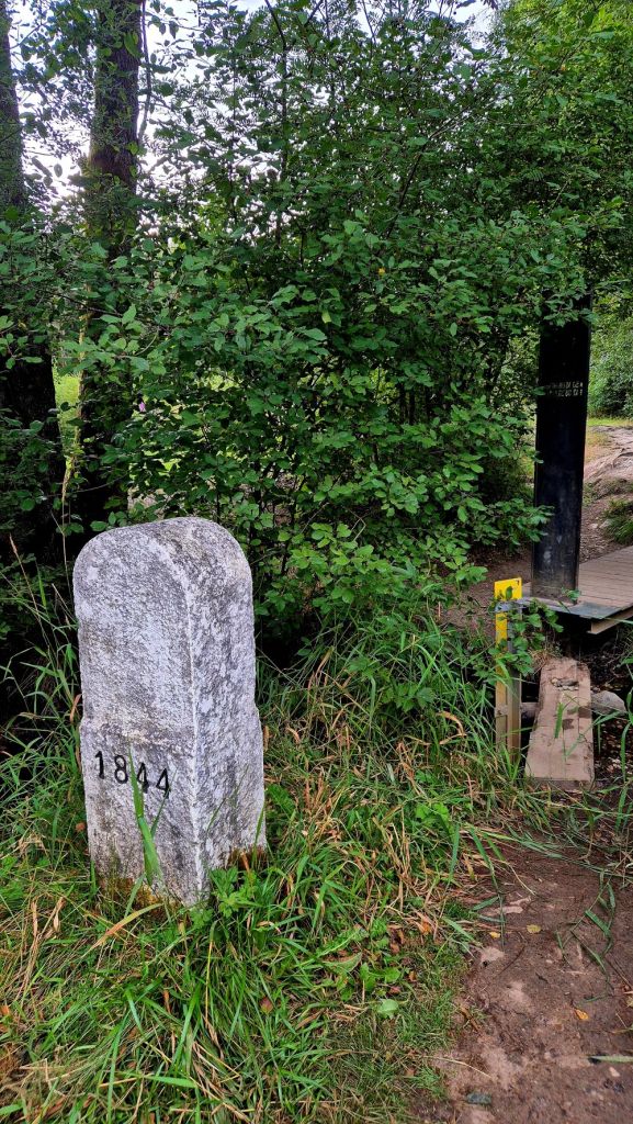 The walk from the car park was pleasant along woodland tracks and it was not long before we saw border markers and signs. There was a small shelter near the westernmost point where 2 friendly Czech hikers were having breakfast. They told us about the Europe Bridge. The Westernmost point is marked by a monument situated in the centre of the stream and its possible to cross the stream into Germany (and back).