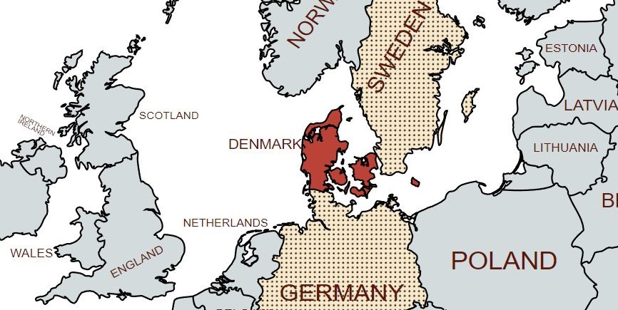 Denmark – Germany Border is 68 km long. The border with Denmark has moved over time. The current border being established in 1920. The border marks the separation between the regions of Schleswig-Holstein in Germany and Jutland in Denmark. It begins in the west, to the south of Tønder, and ends in the east, to the north of Flensburg.