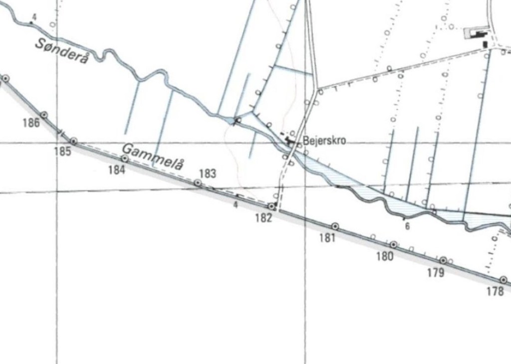 I visited this point as part of the IBRG DEDK21 expedition. Bejerskro is a small rural border crossing between Denmark and Germany. A bridge crosses the Gammelå, a small river that marks the border and flows east to west at this point. There are regional signs in both Denmark and Germany as well as border marker #182. Surveillance cameras provide remote viewing. No border guards required. Up to 2011 there was a small building on the Danish side for border control, long since demolished.