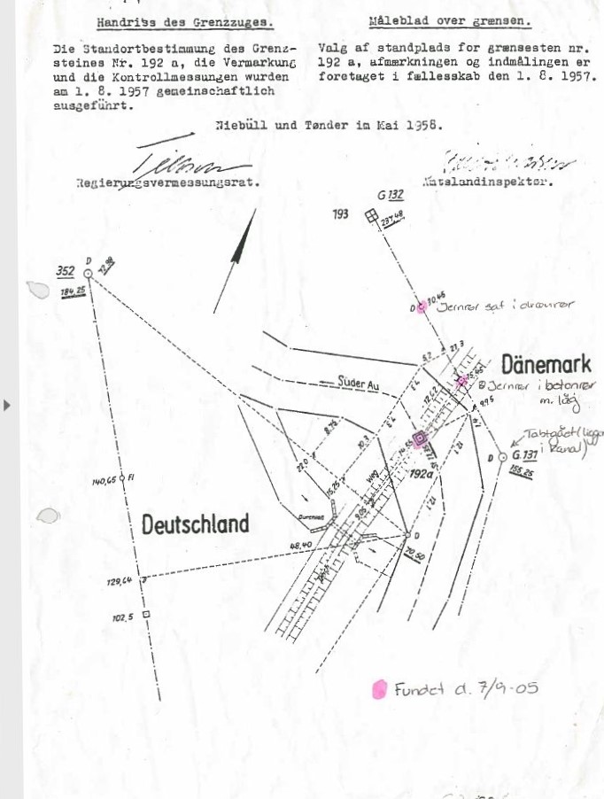What becomes a little clearer is that in the 1950’s the border stream east of Vindtved was made more straight and a canal was build here. Border marker 192a was placed to further delineate the border. What is confusing still is that on the map below it appears that the Süder Au stream is under the marker and continues west. This is not confirmed by various satellite images over time.