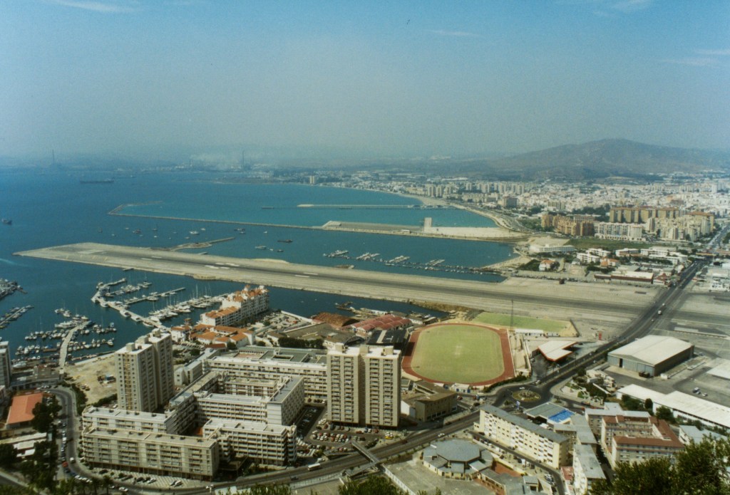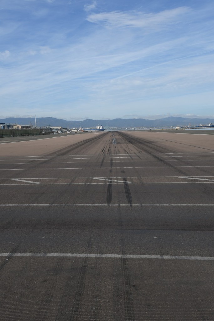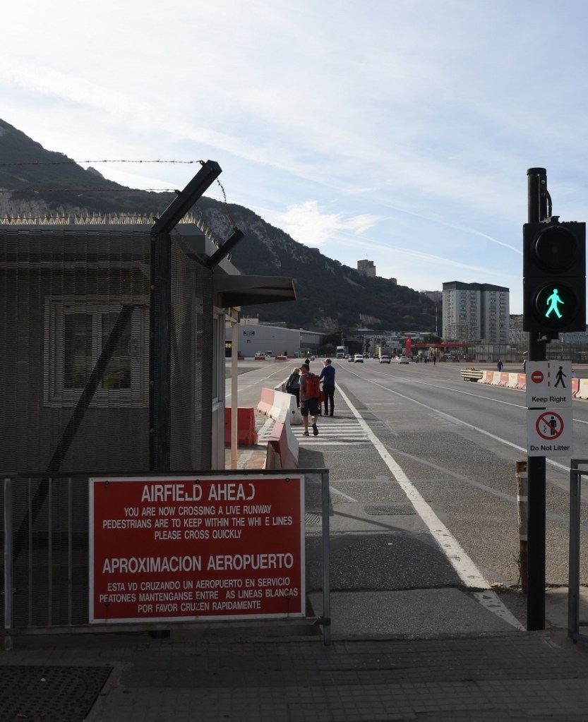 Gibraltar International Airport, previously known as North Front Airport, (IATA: GIB, ICAO: LXGB) is the civilian airport that serves the British overseas territory of Gibraltar. The runway and aerodrome is owned by the Ministry of Defence (MoD), and operated by the Royal Air Force (RAF) as RAF Gibraltar. Civilian operators BA and EasyJet use the civilian-operated terminal. Spain has prevented any other airlines using the airport as part of the EU Open Skies Programme. At the time of our visit an exciting aspect of a visit was the walk down Winston Churchill Avenue across the runway. Since March 2023 however there is a new Kingsway route through a tunnel underneath the runway for both vehicles and pedestrians.