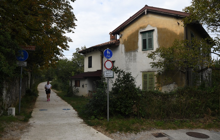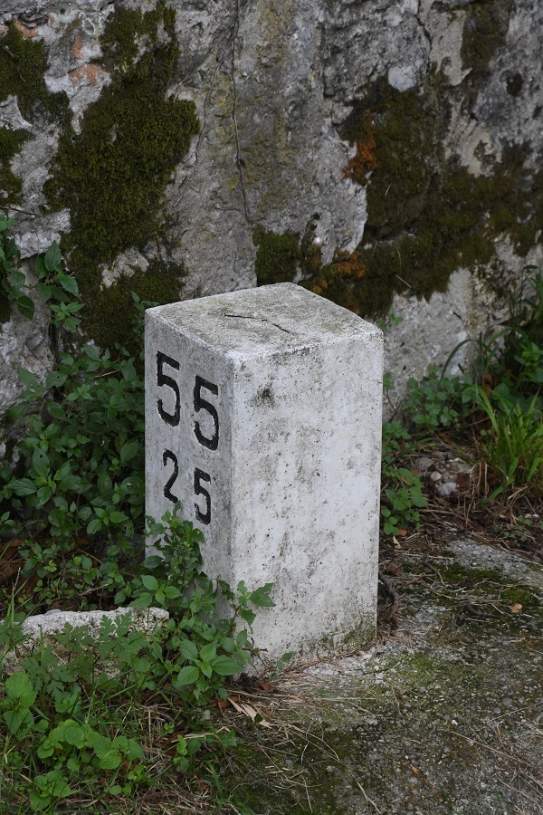 Approaching Gorizia from the north the first POI was easily found. Walking along Pot na Breg the border meets the road at BM#55/29; following the road around from point A to point B and then C, several BM’s are visible against the Italian walls.