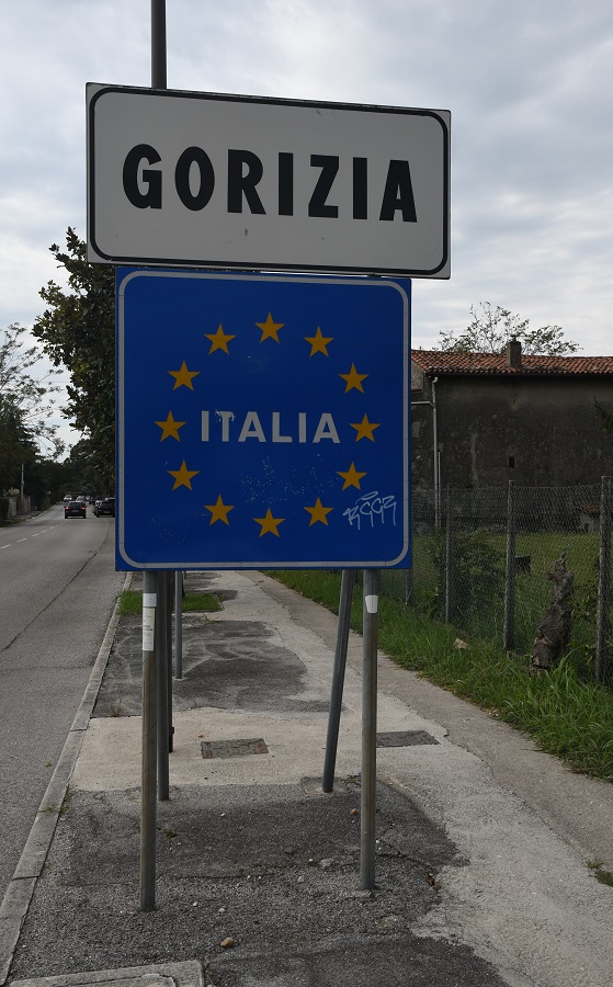 Gorizia is a town in north eastern Italy, situated on the Isonzo River north of Trieste. By treaty in 1947 Yugoslavia received the northern outskirts of the town, and the adjoining Yugoslav town of Nova Gorica was developed. With the breakup of Yugoslavia, the frontier remained as the division between Italy and Slovenia until the implementation of the Schengen Agreement by Slovenia on December 21, 2007. Since May 2011, these towns have been joined in a common trans-border metropolitan zone, administered by a joint administration board. This report is part of a series from a day I spent visiting the borders in this divided town. Links to the right for the other reports as I did them.