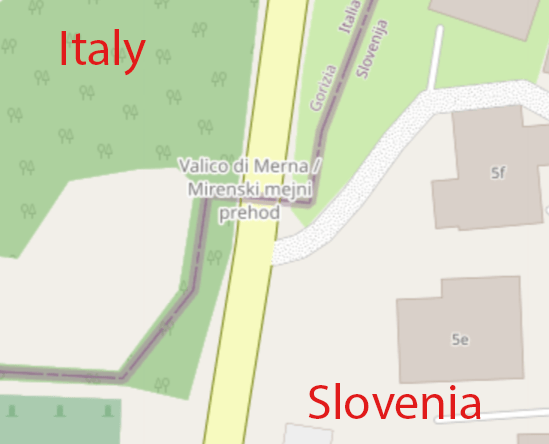 The last POI of our visit to the divided town of Gorzia and Nova Gorica was a border crossing point to the south of the town. Here the border changes direction and is marked by several border markers. As with other places, markers appeared in residents gardens.