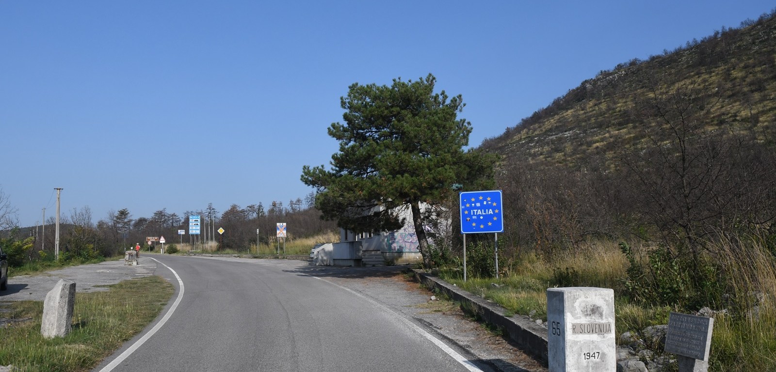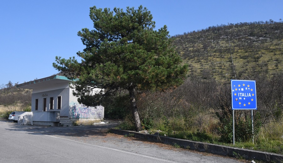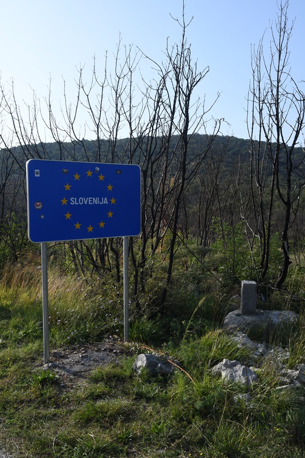 Sometimes an error throws up an unexpected find. We travelled to this rural border crossing as there was a path indicated that led south towards the ITTSYU historical tripoint between Italy, the Free State of Trieste (until 1954) and Yugoslavia. The border crossing itself between Italy and Slovenia was very much a secondary consideration. We visited this point as part of the IBRG SITEX-23 expedition. On the ground however, there was no path evident and the terrain was not easy to walk on with stones and thorny scrub.