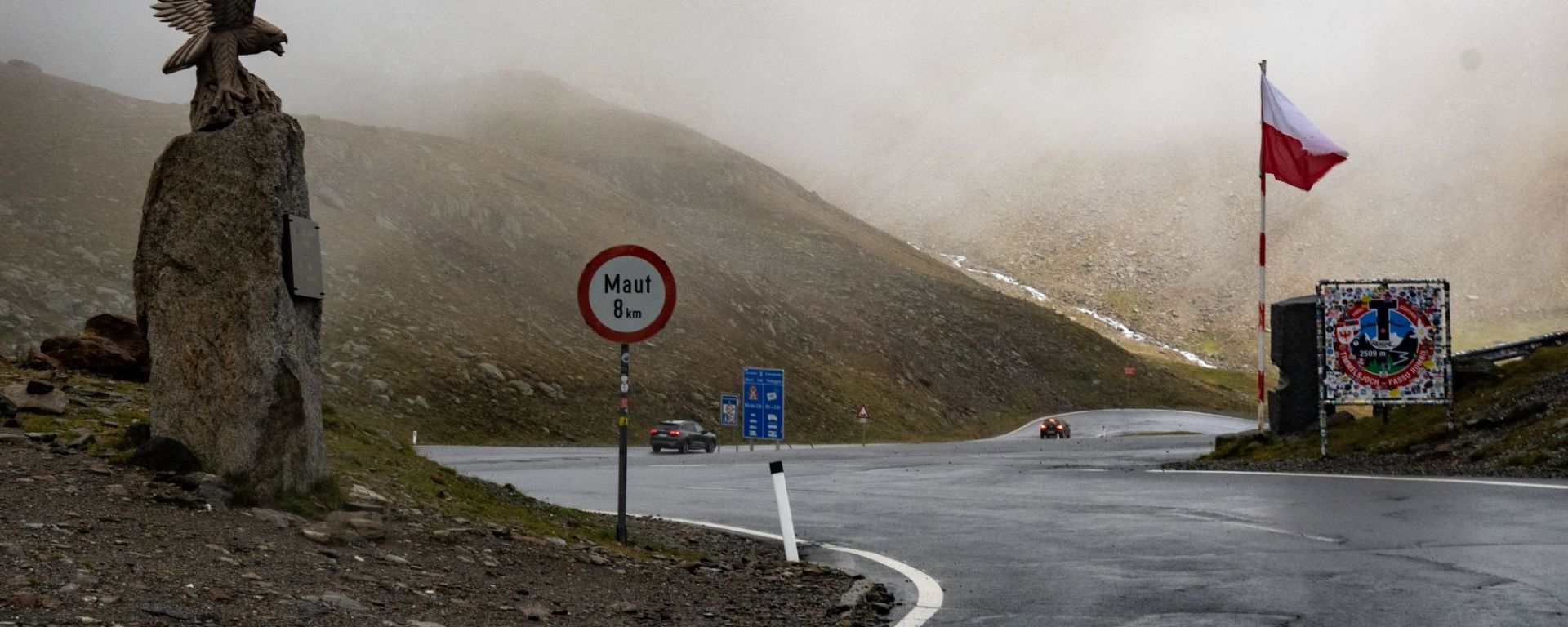 Timmelsjoch (Italian: Passo del Rombo), (2,474 metres)) is a high mountain pass that creates a link through the Ötztal Alps along the border between Austria and Italy. The Timmelsjoch connects the Ötztal valley in the Austrian state of Tyrol to the Passeier Valley in the Italian province of South Tyrol. This is truely an alpine environment with Jochköpfl (3,141 metres) and Wurmkogl (3,082 metres) peaks to its northeast and southwest, respectively.