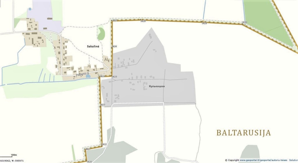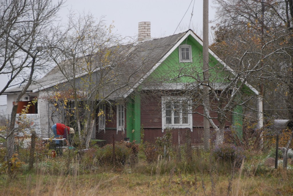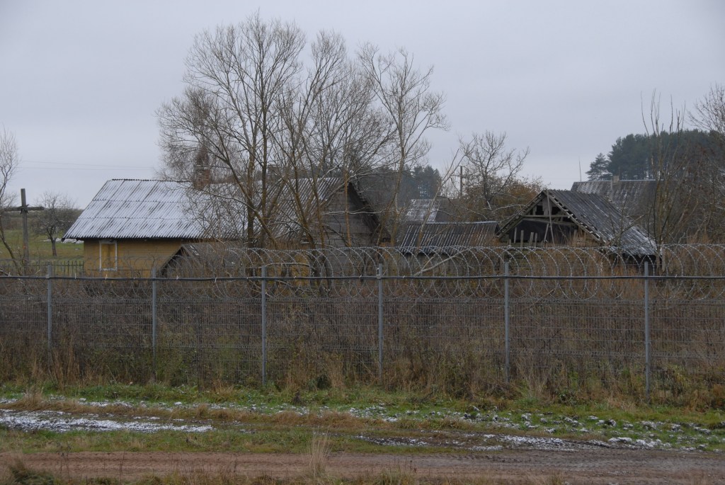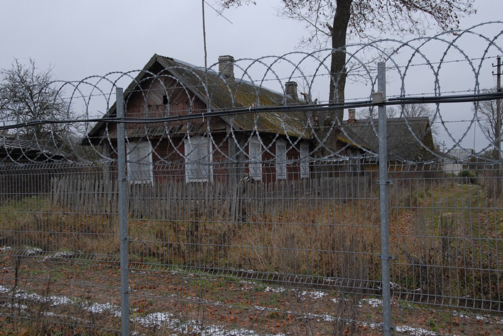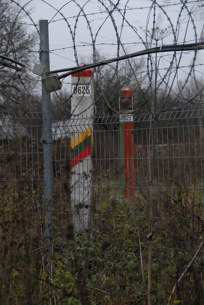 Sakaline (LT) and Kul’kishki (BY) were initially one village. Following the dissolution of the Soviet Union and Lithuanian independence and subsequent EU membership, the 2 parts of the village became divided by the EU external frontier with security fencing and cameras. The Lithuanian part with coloured houses and orchards, seemed more prosperous (although still poor in comparison to other parts of the country), than it’s Belorussian neighbour.