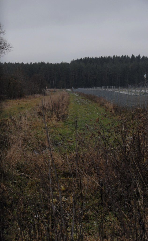 The Lithuanian border guard have an office here and checked our permits on arrival. A Belorussian farmer walked past, pulling a cart just a few meters away, but on the other side of the EU border. There is interaction between the villagers (through the fence) although travel between the villages is expensive with travel to border crossings and the cost of visas.