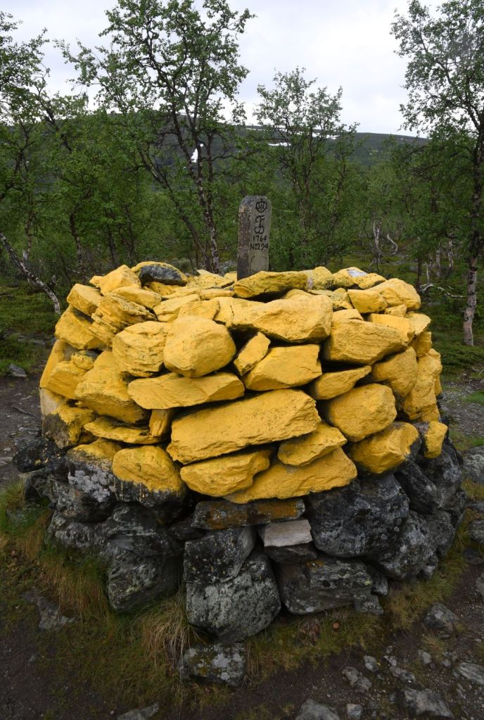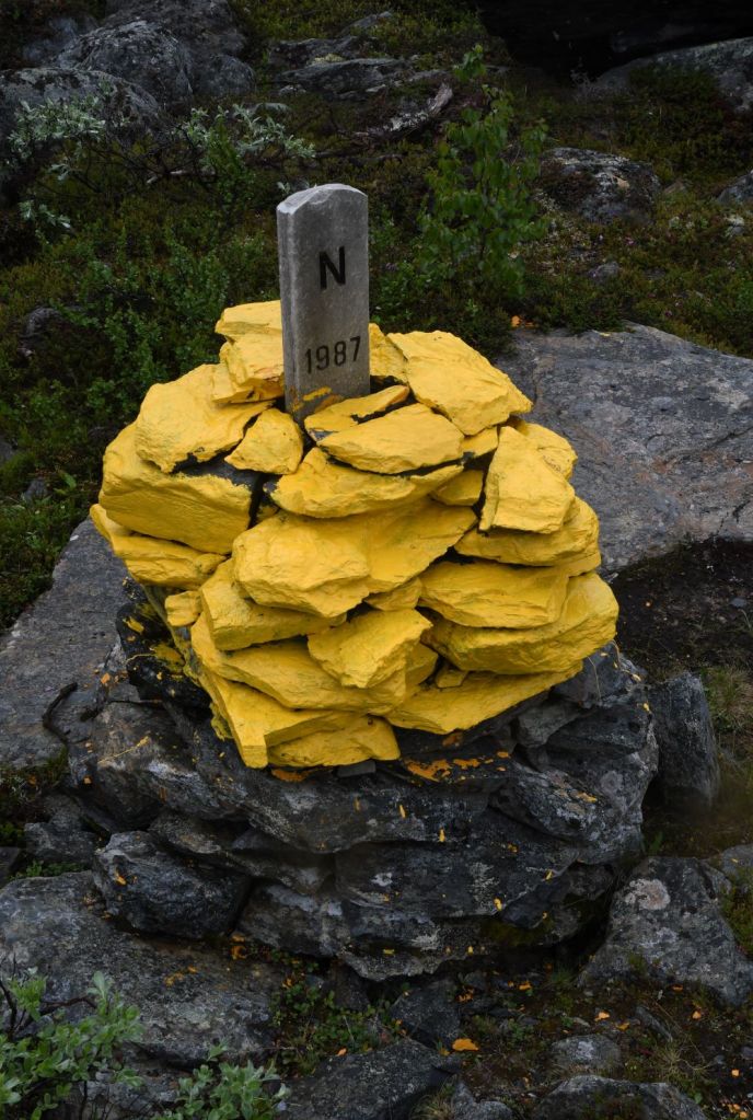 | 2 | FINOSE | Finland – Norway – Sweden | 69°03′35″N 20°32′49″E | Dry | The Three-Country Cairn marks the tripoint. The current tripoint monument was built in 1926 and was originally beige, conical frustum made of concrete, located about 10 metres out in Lake Goldajärvi. The monument is large and there are engraved headstones with symbols of each country. Technically walking around the monument on the platform means leaving Sweden, entering a small pene enclave of Norway and then entering Finland if you walk in a clockwise direction. The are several border markers in the vicinity. Krogh Van der Giessen (2024) |