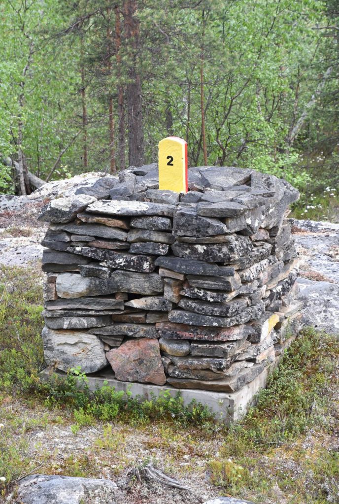 The ultimate goal when leaving the car park is to walk to the Treriksrøysa, the FINORU tripoint between Finland, Norway and Russia. The walk is along a marked track which follows the Norway – Russian border and in some places is very close to it. With some planning, and by using the cleared border corridor it is possible to combine a visit to the tripoint with an opportunity to bag the border markers BM#1 to BM#6. BM#2 is special as it is a cairn with a shared border post on the top of it.