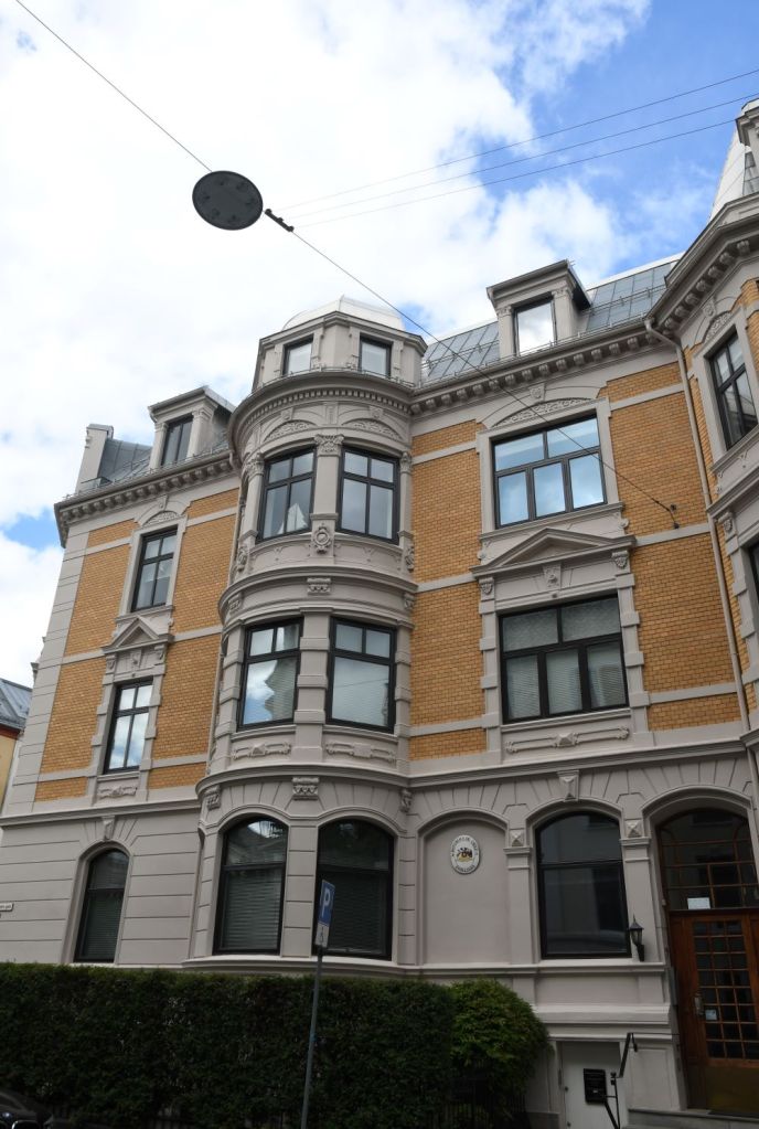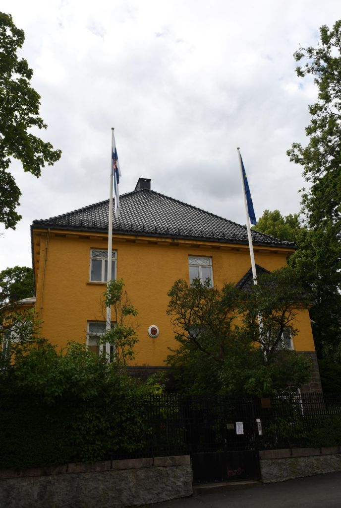 The Embassy of the United Kingdom in Oslo is the chief diplomatic mission of the United Kingdom in Norway. The Embassy is located on one of the most expensive streets in Norway, Thomas Heftyes gate, in the Frogner district. Sadly the building visible from the road is a functional administrative one. The embassy proper is much more grand.