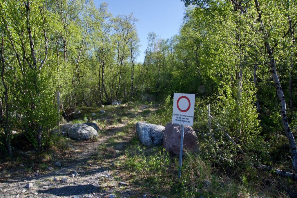 Looking at a map does give some indication about what to expect. Note the contour lines that indicate a increasing slope up to the Norwegian Border Control Facility following a track. South of the building there is a steep slope down to the border line, with no tracks indicated.