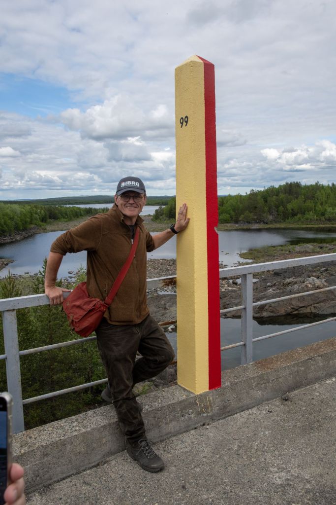 After clearing the last security gate it was a short walk to the border line where BM#99 stands. A shared pole, we were allowed to touch the Norwegian side but not the Russian. As the company employee had permission to cross the border he was able to take a rare photo looking back with us standing on the border line with the Russian side of border marker.