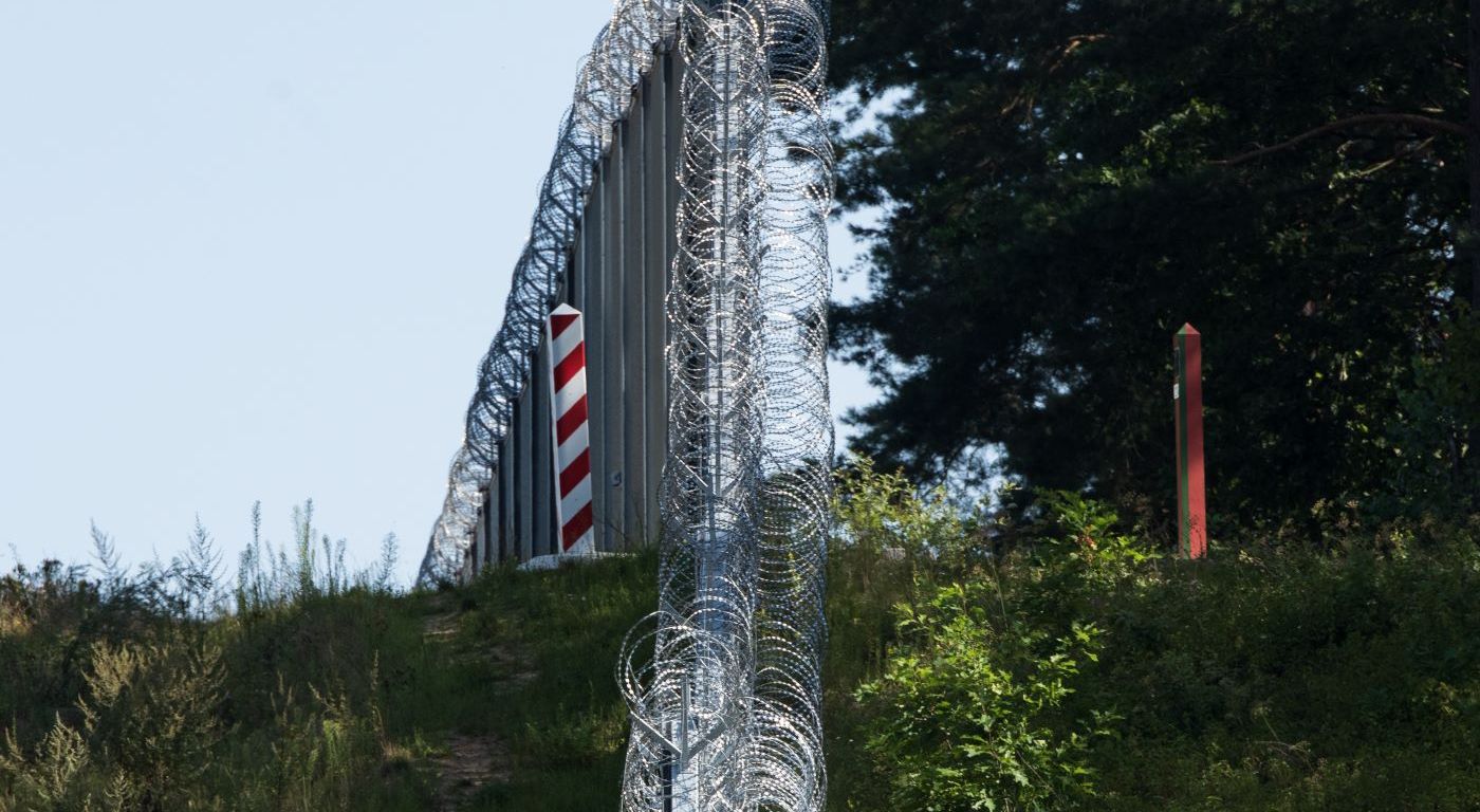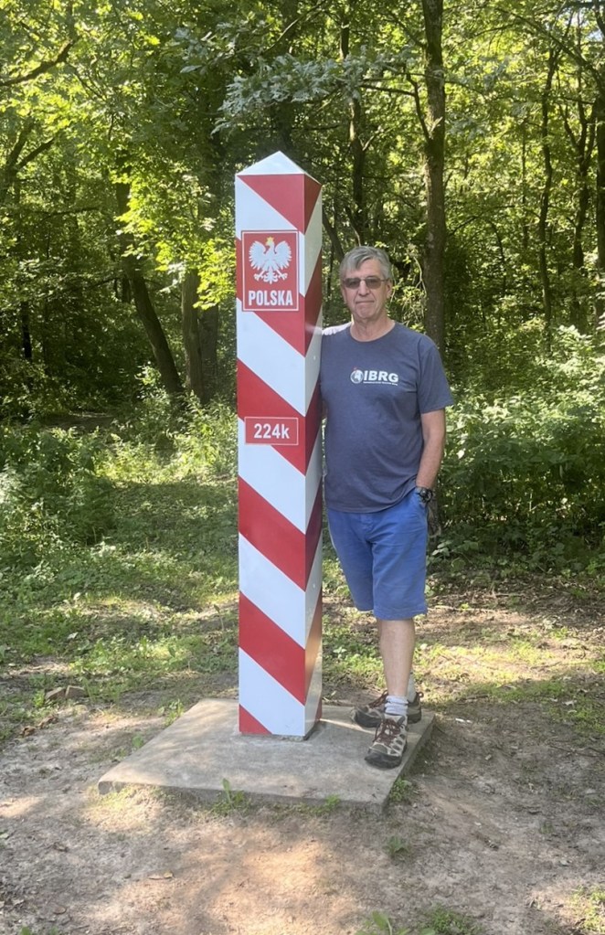 Our first visit of our final day was to the point where the Poland – Belarus border turns north-east away from the River Bug and becomes “dry”. It is at this point that the Polish border wall begins. Poland began building a border wall on the border with Belarus to prevent illegal immigration in 2022 after Belarus weaponised migration by pushing migrants towards the border. The wall is 5.5 m high and topped with barbed wire, there is extensive electronic surveillance as well.