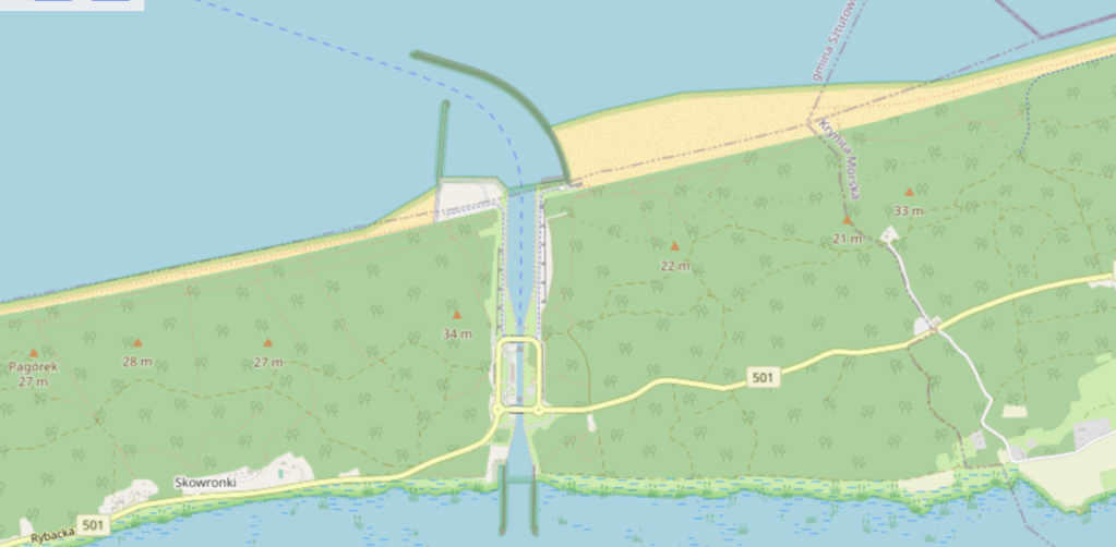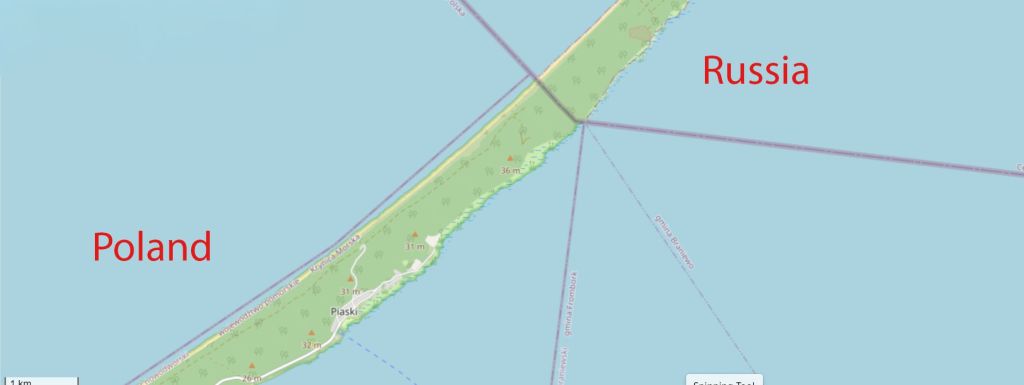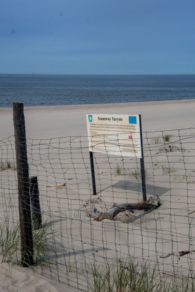 The Vistula Spit is a narrow peninsular stretch of land in the Baltic Sea, and it is bisected by the international border between Poland and Russia (specifically, Russia’s Kaliningrad Oblast exclave). The border runs across the spit, with the southwestern portion belonging to Poland and the northeastern tip belonging to Russia. The border on the Vistula Spit is the shortest section of the entire land border between Poland and Russia, measuring only 0.835 km long on the onshore part. Unlike other sections of the Polish – Russian border, although there is Border Guard presence the atmosphere is relaxed, primarily because this is a hiking and cycling area and there is a 620m buffer area, so a direct approach to the border with Russia is impossible.