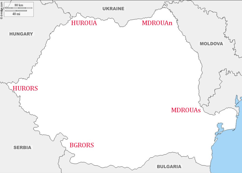 | 4 | MDROUAn | Moldova – Romania – Ukraine (north) | 48° 15′ 50″ N 26° 37′ 31″ E | Wet | The tripoint is located 500m south east of the Mamalyha – Kryva border crossing post (MD side) in the Prut which is the border between MDRO for its entire length. There are 3 BM’s, BM#003 north of the road leading to UA, and BM#002 and #001 between the crossing point and the river. | ||