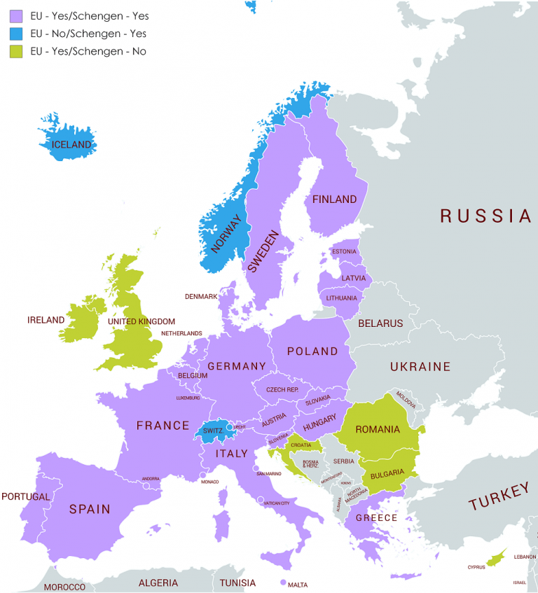 1) Romania–Bulgaria border is 630 km long with 21 border crossings. For most of its length, the border follows the course of the lower Danube River, up until the town of Silistra. From Silistra, the river continues north into the Romanian territory. East of that point, the land border passes through the historical region of Dobruja, dividing it into Northern Dobruja in Romania and Southern Dobruja in Bulgaria. The Bulgaria–Romania border is an internal border of the European Union. However, as of 2019 neither country is part of the Schengen Area. As a result, border controls are conducted between the two countries, albeit often jointly (once per crossing).