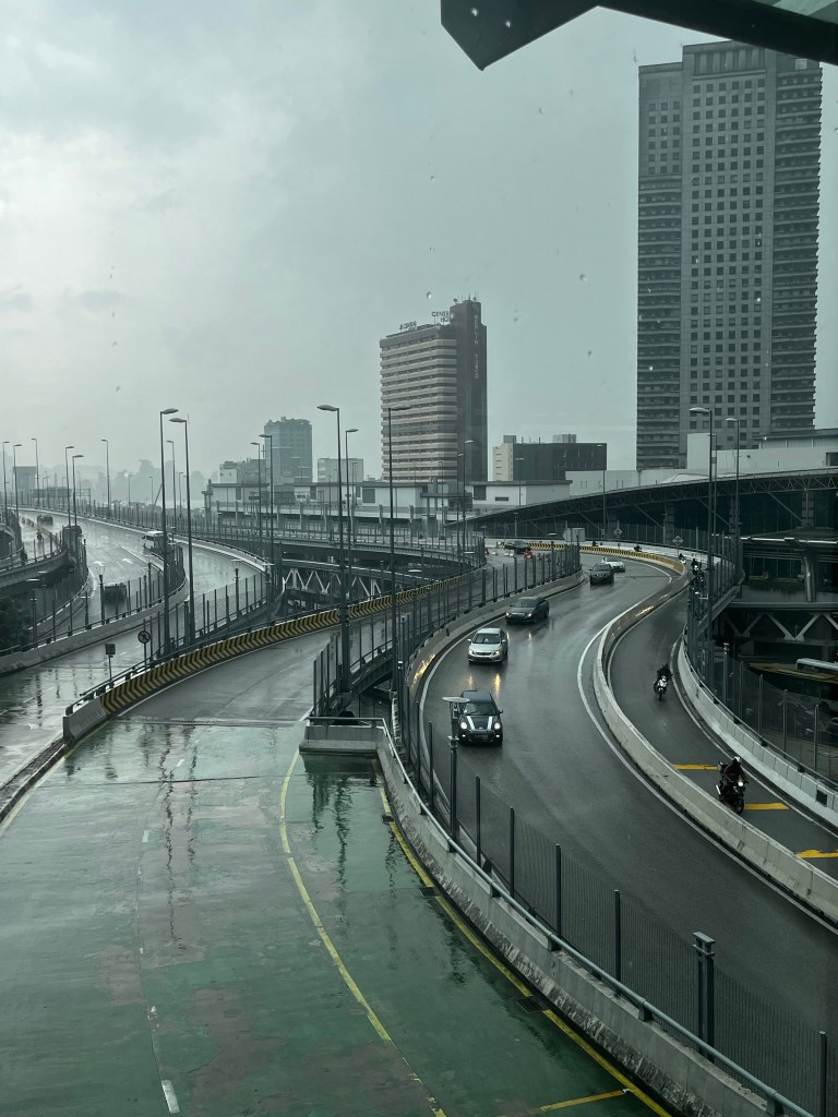 It was less easy to take photos on the Malaysian side. Accessing the border control facility was through a shopping centre, and the weather was awful with heavy rain. I did my best however to capture the beginning of the causeway from the north and the amount of traffic crossing to Singapore.