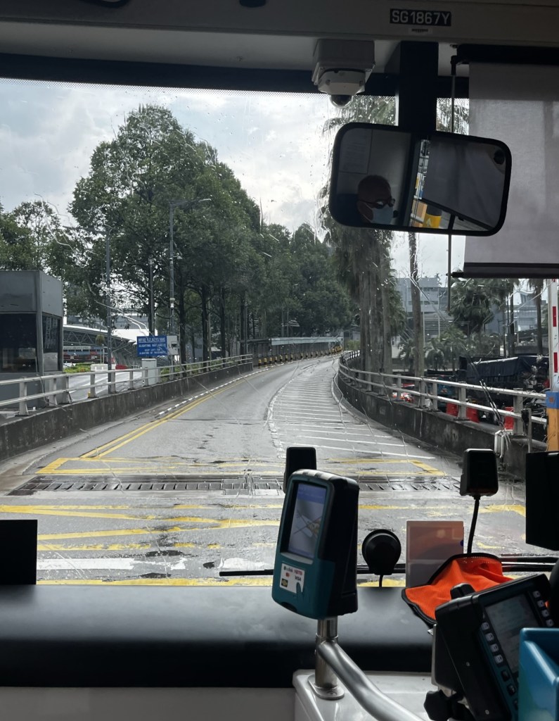 Speaking to the bus driver, the sculpture marks the border, and the hatched road markings are immediately on the Malaysian side of the border. There were 2 individuals with hi vis jackets on the border but I am not sure why. Interestingly, some passengers who overheard my conversation confessed they had no idea where the border was despite travelling most days.