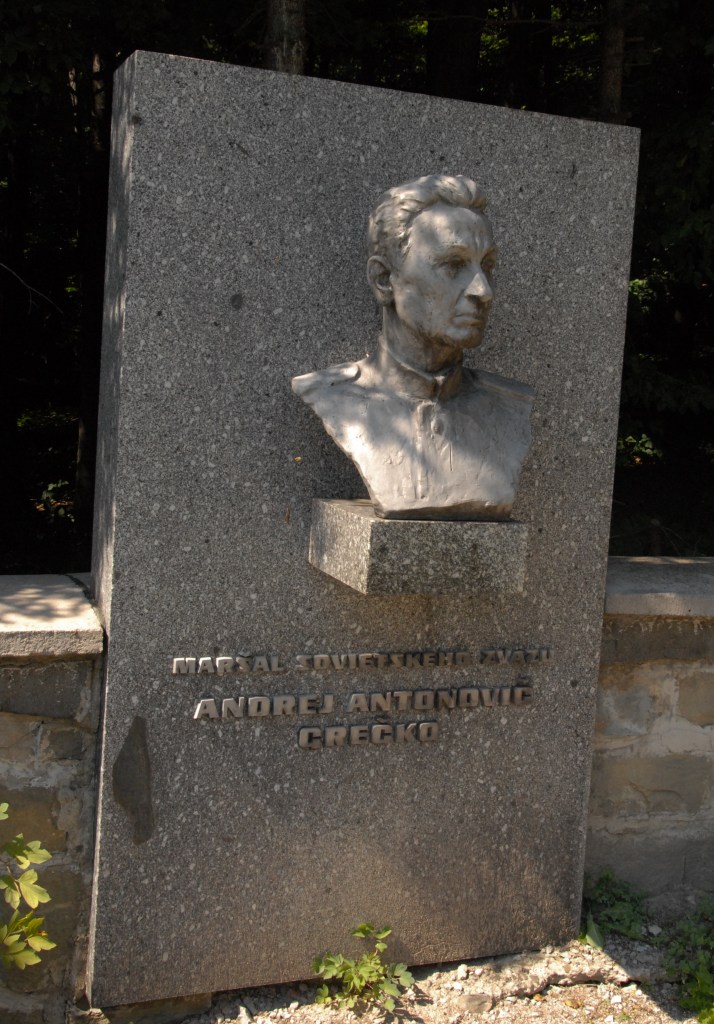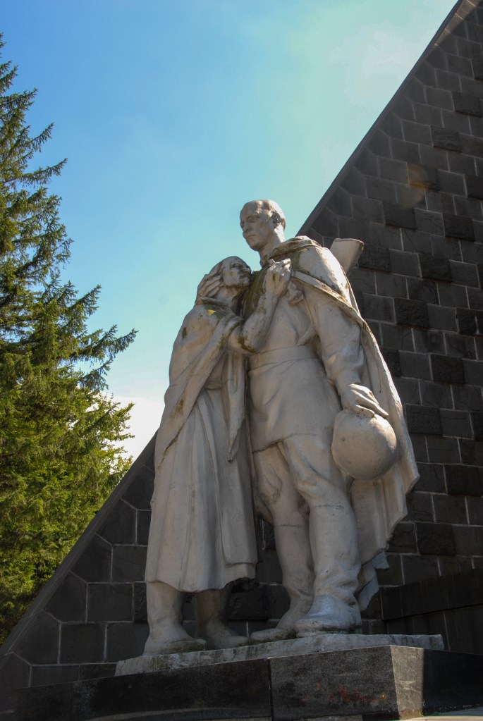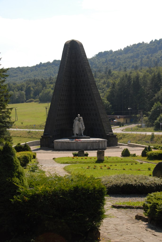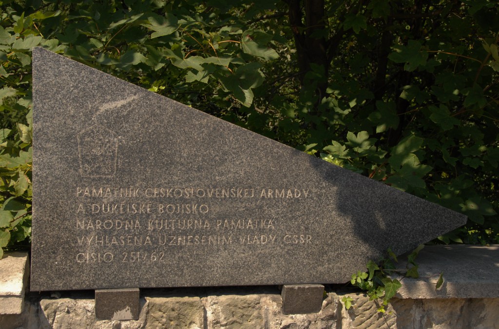 The Memorial is 28 m tall and is completed by a bronze statue by Ján Kulich named “Žalujem” (I accuse). It was built in 1949. The mother from Dukla thanks a Soviet soldier for liberating them but at the same time she also accuses them of Munich, Lidice, Ležáky, Ostrý Grúň, Kremnička, Kľak and Tokajík. It is set into the military cemetery divided by a colonnade of bronze tablets with the names of 1265 members of 1st Czechoslovak Army Brigade who died there. There is an observation tower and further exhibits.