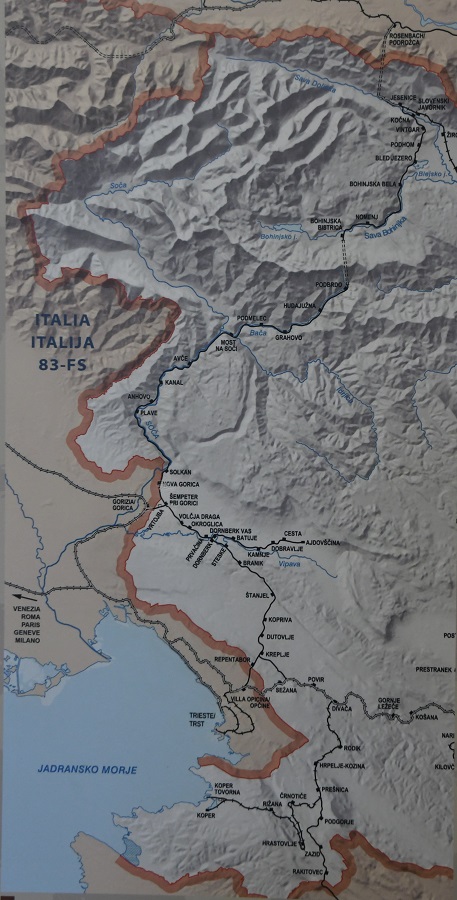 Gorizia is a town in north eastern Italy, situated on the Isonzo River north of Trieste. By treaty in 1947 Yugoslavia received the northern outskirts of the town, and the adjoining Yugoslav town of Nova Gorica was developed. With the breakup of Yugoslavia, the frontier remained as the division between Italy and Slovenia until the implementation of the Schengen Agreement by Slovenia on December 21, 2007. Since May 2011, these towns have been joined in a common trans-border metropolitan zone, administered by a joint administration board. This report is part of a series from a day I spent visiting the borders in this divided town. Links to the right for the other reports as I did them.