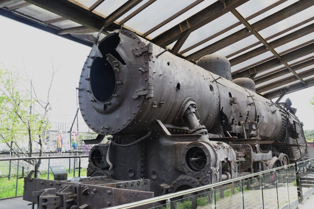 The last train to cross the border between North and South Korea, a military transport delivering supplies to UN forces following MacArthur’s inland push in 1950, became stuck Hanpo Station in Hwanghe-do in what is now North Korea on December 31, 1950 due to Chinese troops ahead. Unable to turn around, the conductor attempted to back the train back down to Munsan but was stopped by US troops who decided that rather than risk the train falling into North Korean hands, were ordered to destroy the train. The locomotive was a KNR Mateo1 Class. In 2004 the rusted locomotive was registered as a Cultural Heritage site and is a visual reminder of the length of time the border has been closed in the hope trains will once again cross freely.
