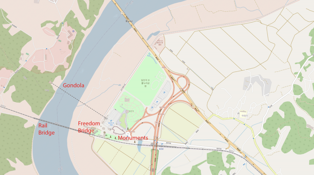 My initial focus was the 2 bridges (one complete, one damaged) across the Imjin River. The former railroad bridge which was used by repatriated POWs/soldiers returning from the North.