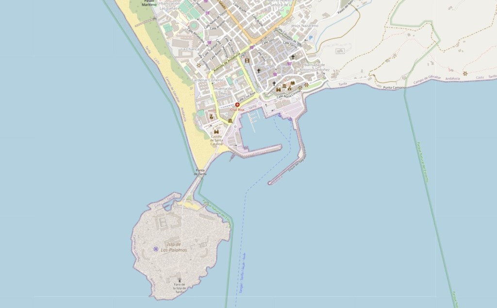 As you enter the port you pass the Punta de Tarifa or Punta Marroquí which is the southernmost point of the Iberian Peninsula and Continental Europe.