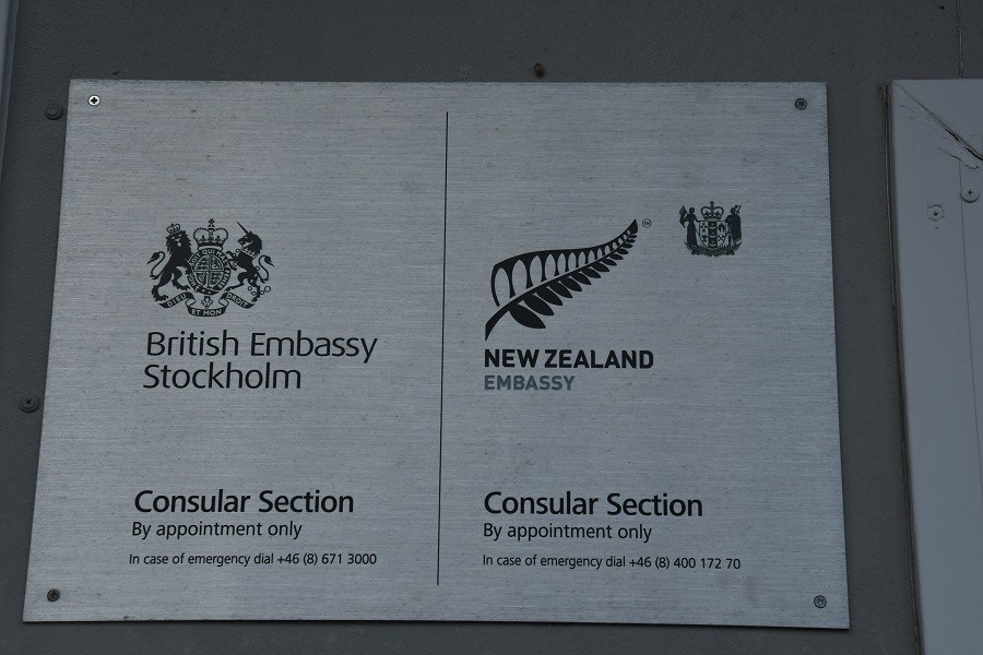 Many embassies are located on Skarpögatan in the Diplomatstaden neighbourhood. Here are some I saw.