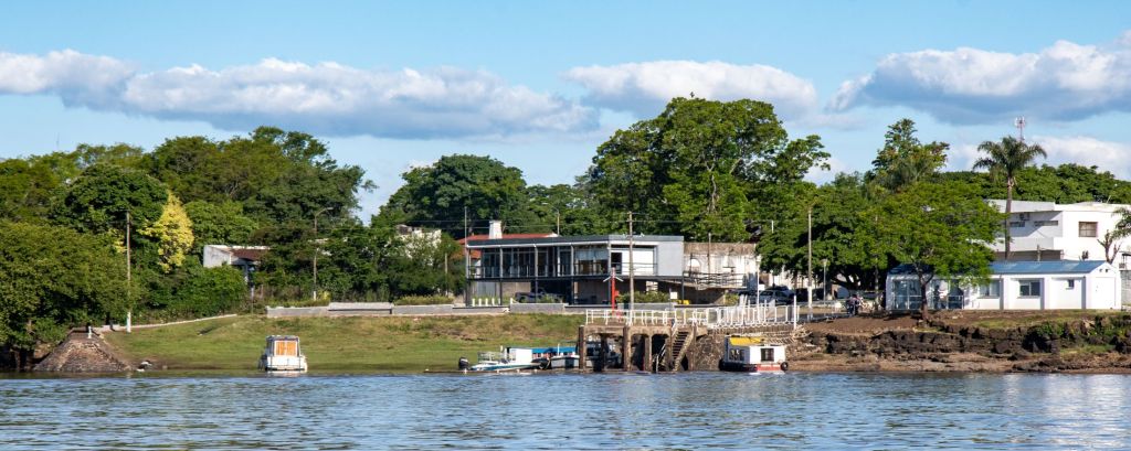 This route is primarily used for local transit and trade and is served by two passenger-only boats: the Santa Inés (Argentine) and El Tiburón (Uruguayan), the journey between the 2 ports takes 10–15 minutes and costs $300 Uruguayan pesos. The official crossing point is generally open from 08:00 to 12:00 and 14:00 to 20:00 on weekdays. Since 2022 there have been initial studies into the building of a bridge between the 2 towns. This project remains within the early planning phase.