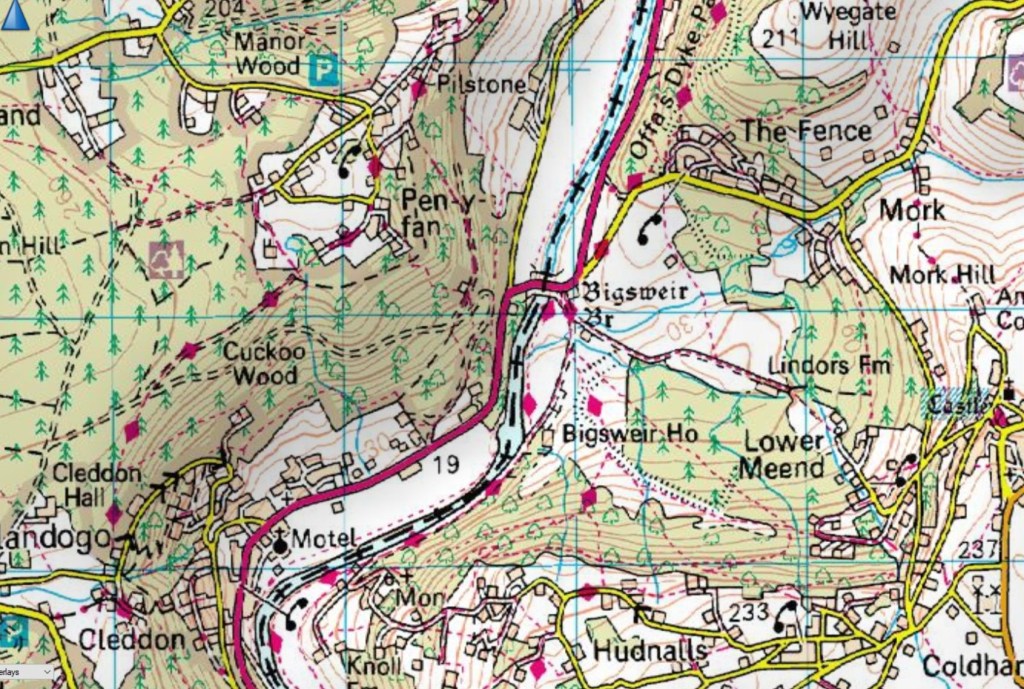 Wales (L) and England (R) with the Rive Wye as the border