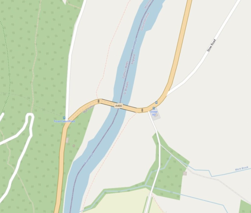 The bridge carries the A466 road, and is located about 3.2 km north of the village of Llandogo, 2 miles (3.2 km) south of Whitebrook, and 4.8 km west of the village of St Briavels. It is the Normal Tidal Limit of the River Wye, and navigation below this point falls under the jurisdiction of the Gloucester Harbour Trustees.