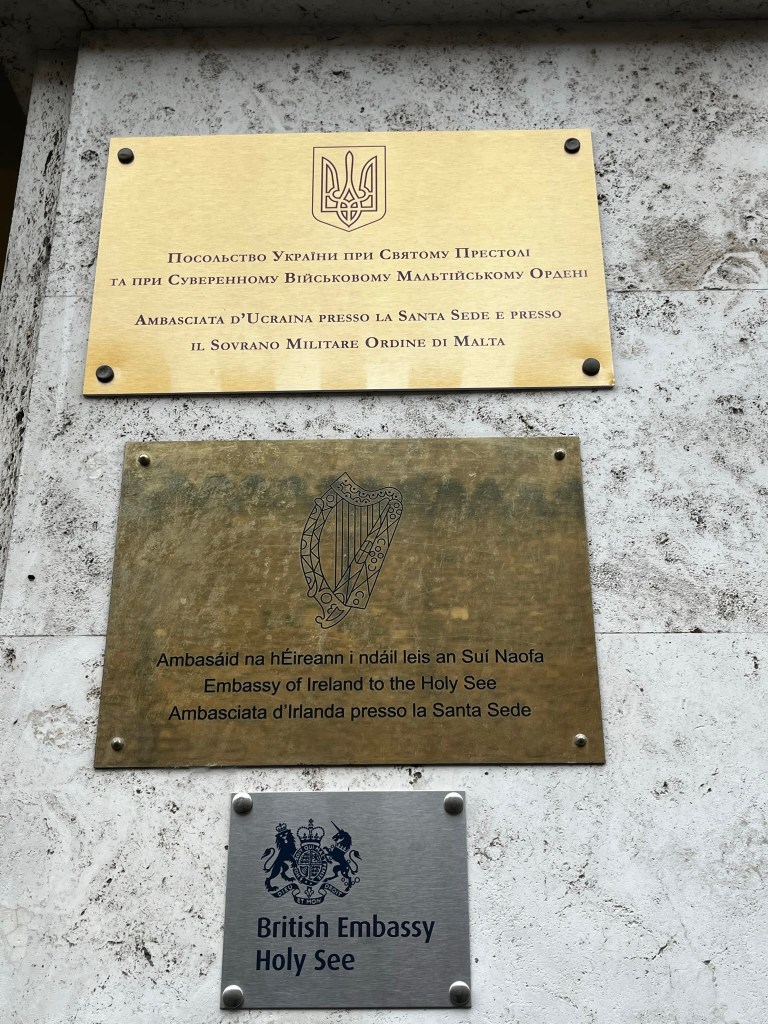 Without trying very hard by walking along some roads close to the Vatican I was able to see many countries Embassies to the Holy See.