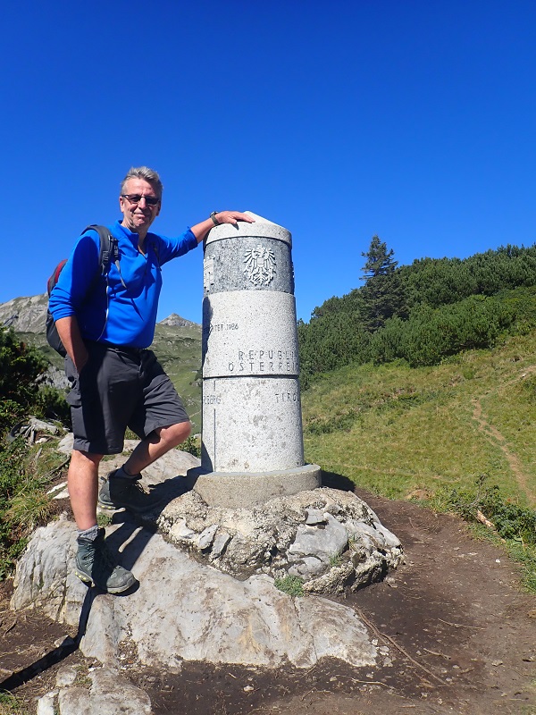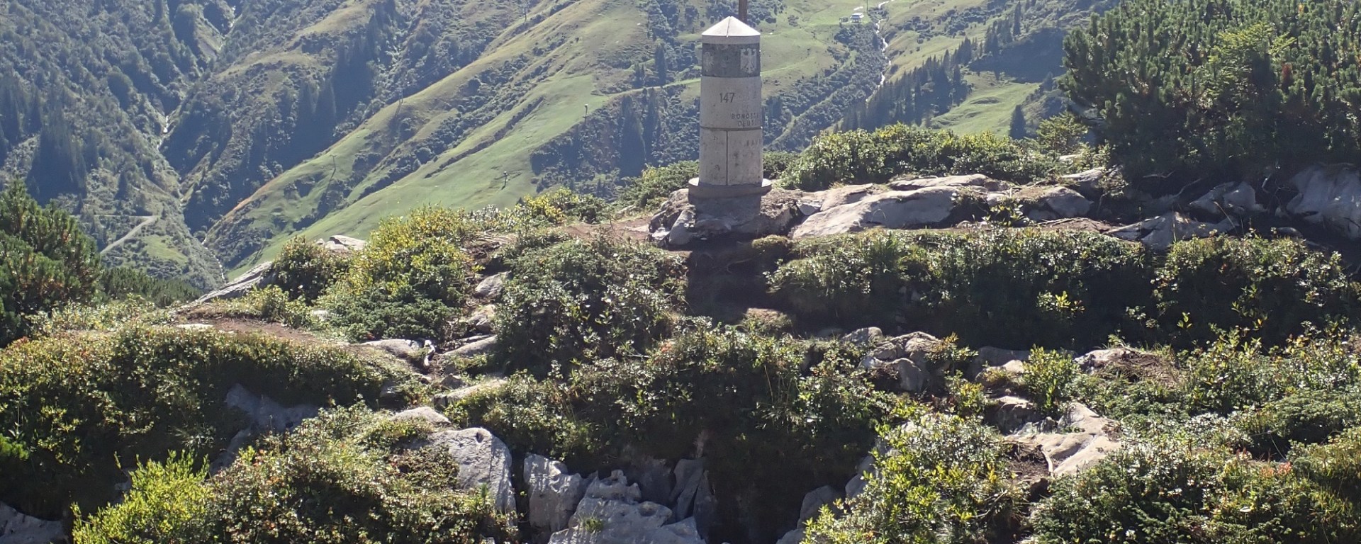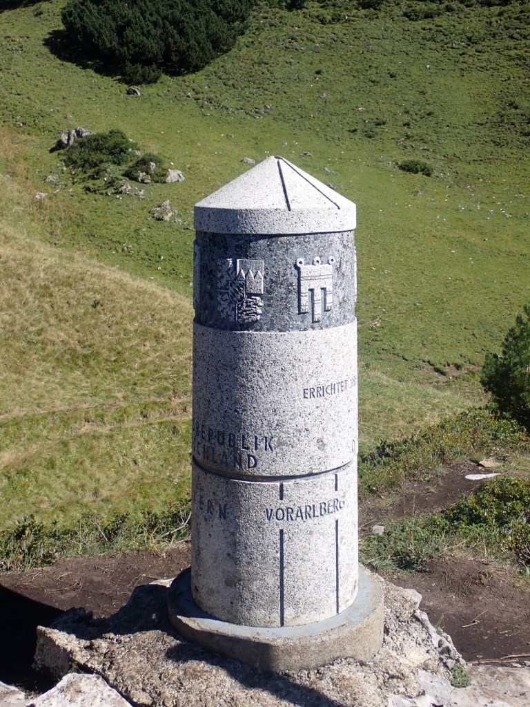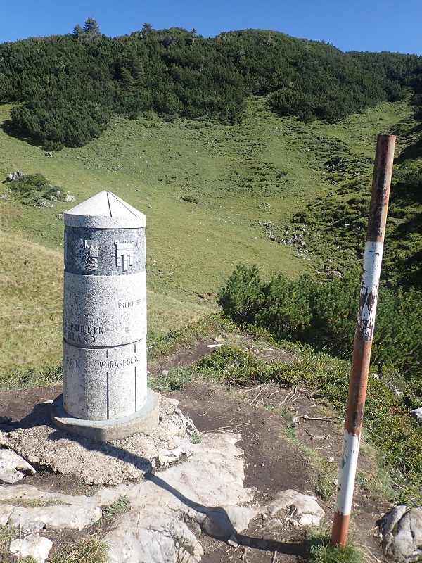 After leaving the Schrofenpass and walking west we reached the impressive border marker #147. In 1986, on the initiative of Vorarlberg, a granite column was erected there to replace the old boundary stone. The original boundary stone from 1844, was taken to the Bavarian State Surveying Office.
