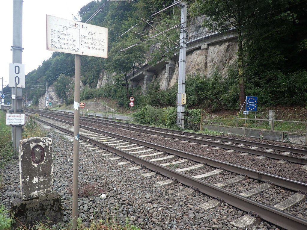 Our final day was packed with border interest. Our first visit was to 2 sights near Hechtsee. The first was a joint rail and road crossing between Austria and Germany with both national and regional signs as well as demarcation between the ÖBB and DB rail companies. The next sight was the actual Hectsee a lake on the border which is marked by a historical border marker from 1844. Details of our visits are here.