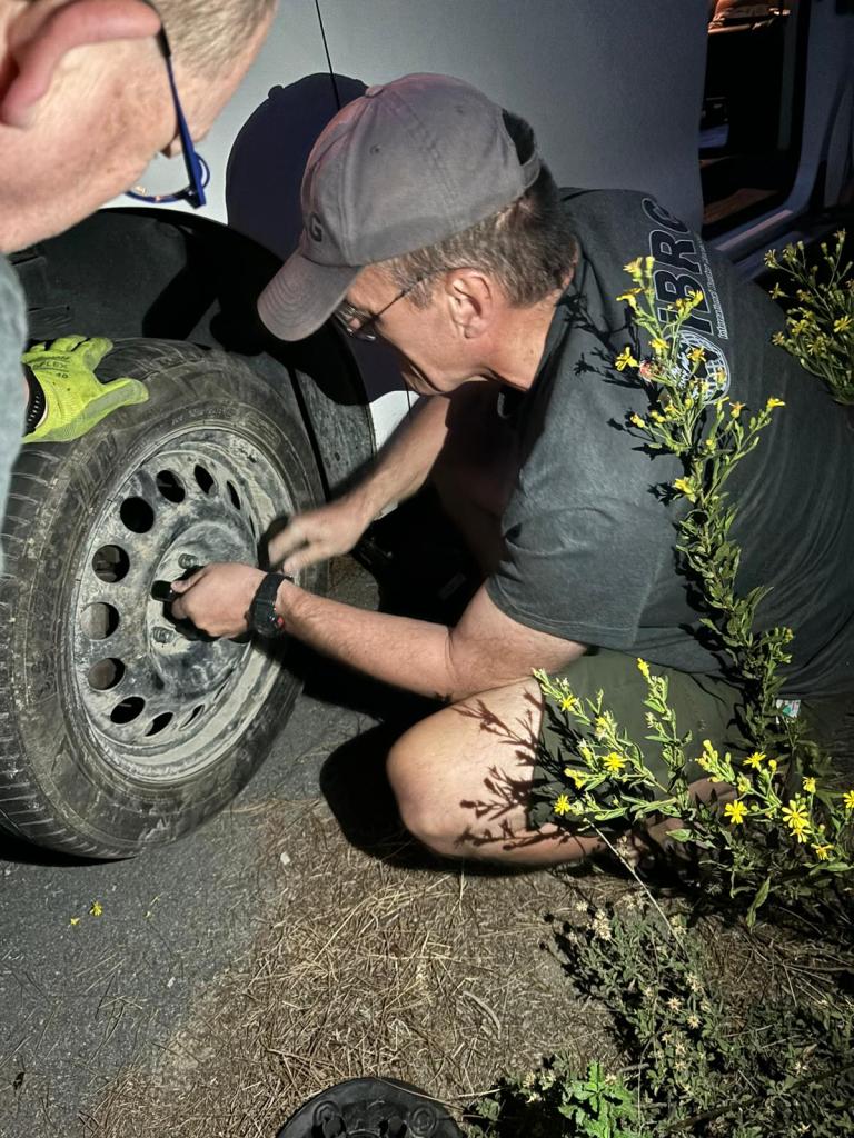 The puncture was solved quickly, it was reassuring how many cars stopped to see if we were OK. It was also the first opportunity for the IBRG Hi-Vis vest to be used in action.!
